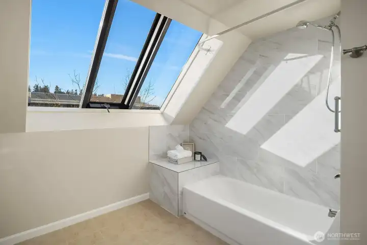Discover refined island living in this elegant 2-bedroom, 2-bath, 2-story condo ideally located in the heart of Mercer Island Downtown. Enjoy a truly walkable lifestyle with shops, dining, parks, and daily conveniences just steps away, along with an effortless commute to both Seattle and Bellevue. The well-maintained building offers excellent security, a welcoming lobby, and elevator access, providing comfort and peace of mind. Rare for the area, the home includes two dedicated parking spaces in the secure garage. Inside, the thoughtfully designed main level features an open-concept living and dining area filled with natural light, ideal for entertaining or everyday living. The updated kitchen offers generous cabinetry and workspace, while a full bathroom on the main level adds convenience and flexibility. Upstairs, the spacious primary bedroom serves as a private retreat, complete with a full ensuite bath. The second bedroom is perfect for guests, a home office, or additional living space. Additional highlights include ample in-unit storage, a generously sized balcony for outdoor enjoyment, and a well-managed HOA supporting a low-maintenance lifestyle. Located within top-rated Mercer Island schools, with a school bus stop conveniently located right on the street, this home offers an exceptional opportunity for comfort, convenience, and long-term value in one of the island’s most desirable settings.
