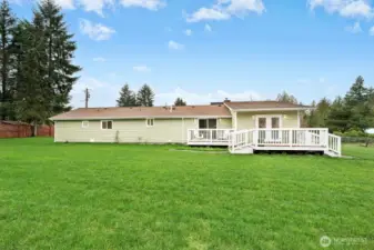 Turnkey, fully updated single-level home combining modern interiors, functional living space, and a scenic setting. Updates include remodeled kitchen, all updated bathrooms, and durable LVP flooring throughout. Showcase kitchen features SS appliances, quartz counters, new cabinetry w/ undermount lighting, walk-in pantry, and a garden bay window bringing in natural light. Thoughtful layout throughout the home offers ample storage and everyday functionality. The primary suite features a beautifully updated bath w/ a walk-in shower and frameless glass door, while the oversized guest bath is complete w/ a tub/shower combination. Additional interior features include LED lighting, tankless water heater, and a cozy wood-burning fireplace framed by custom built-in bookshelves, adding warmth and character to the living space. Spacious laundry room w/ barn door and dedicated utility sink, ideal for everyday convenience. Outside, enjoy Trex decks for entertaining, a covered front porch, and an attached single-car garage w/ built-in shelving. Property offers abundant parking for approx six cars. The huge, flat, fully fenced backyard is a standout—ideal for gatherings, outdoor living, recreation, gardening, or simply enjoying the peaceful forest and pasture views. Sought-after South Kitsap location w/ easy freeway access, conveniently close to Gig Harbor, Port Orchard, and the ferry, plus schools, shopping, for easy commuting.