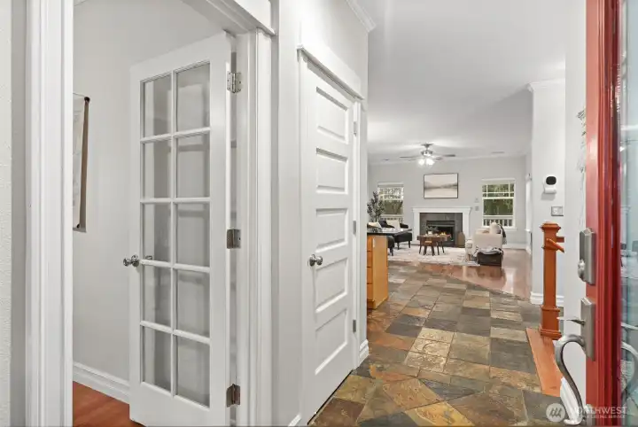 Nestled in the heart of Monroe, this thoughtfully designed 3-bedroom, 2.5-bath rambler with a fully finished basement offers space, comfort & modern updates throughout. A covered front deck welcomes you inside, where slate and hardwood floors set the tone from the entry. Just off the foyer, a private home office with a bay window provides the perfect work-from-home setup. The main living area opens effortlessly into the kitchen, dining, and family room, creating an ideal layout for everyday living and entertaining. The kitchen features granite countertops, a full-size pantry, and an eating bar & dining area, while the family room is anchored by a cozy gas fireplace. Step outside to a spacious entertaining deck overlooking your fully fenced, private backyard—perfect for summer gatherings or quiet evenings at home. Down the hall, the owner’s suite offers a peaceful retreat with walk-in closets and a fully remodeled ensuite bath. A convenient half bath is located on the main floor before heading out to the two-car garage. The fully finished basement expands your living space with two additional bedrooms, a full bath, a laundry room, and a large bonus room with direct access to the backyard. Outside, enjoy a large patio beneath the deck and a dedicated dog run, ideal for pets and outdoor living. Major updates include an updated Owner’s en-suite, furnace, central air conditioning, and roof, and the home has already been pre-inspected, offering peace of mind for the next owner.