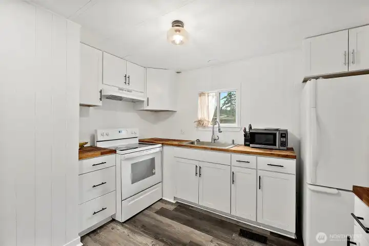 Welcome to this beautiful home in the heart of Rainier. This 3 bedroom, 2 bath residence-plus a bonus room that can serve as a 4th bedroom- sits on over one-third of an acre with a fully-fenced yard. Enjoy a refreshed kitchen with newer cabinets and butcher block countertops, updated bathrooms, new flooring, shiplap accents, vaulted ceilings, and a newer roof (Just barely 3 years old). Spacious primary suite offers its own private bathroom. Ideally located for an easy commute to JBLM, Olympia, Yelm , and Tenino.
