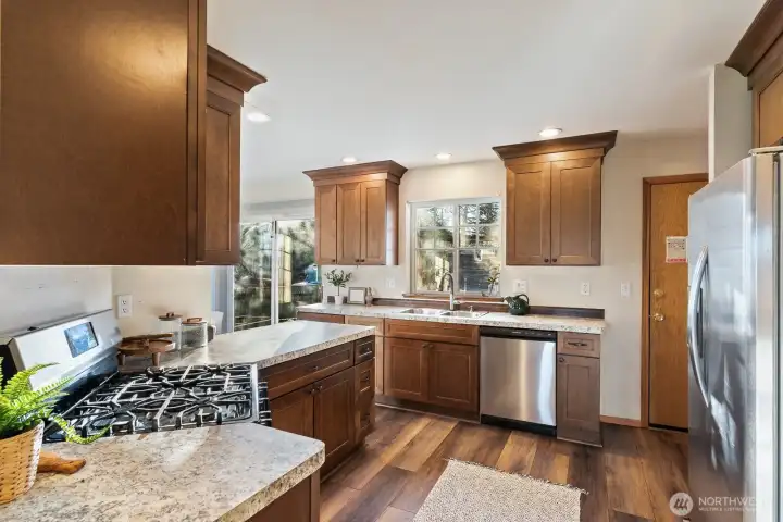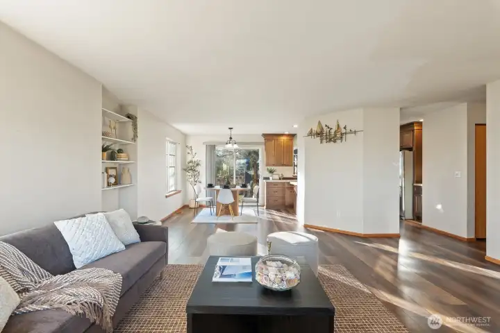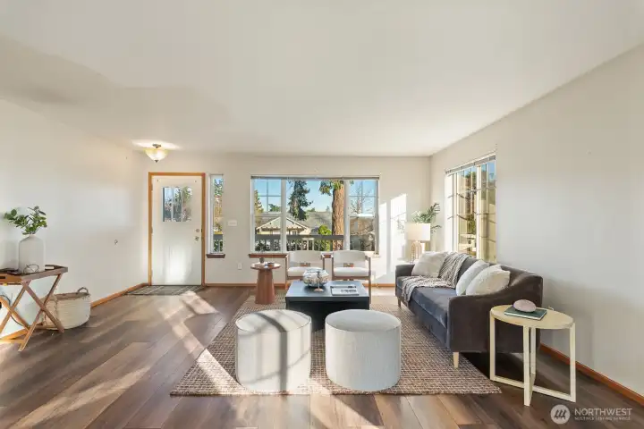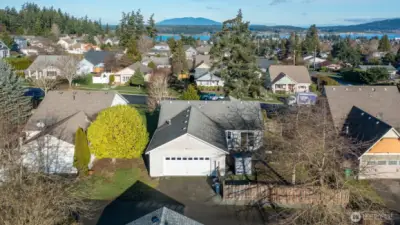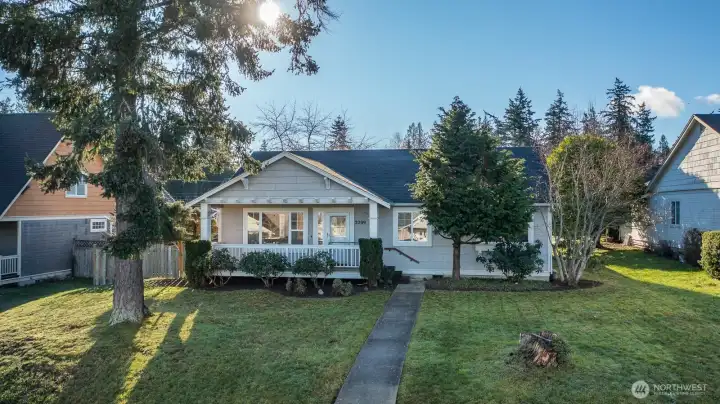 Tucked into a charming neighborhood just moments from town, parks and the beloved forestlands, this sweet cottage rambler offers cozy comfort. Welcoming covered front porch sets the tone into the open light-filled living space with an easy, natural flow and inviting character throughout. Abundant natural light, while a peek-a-boo view of the Guemes Channel adds a delightful coastal touch. The thoughtful floor plan features a private primary suite with walk-in closet and attached ¾ bath, plus two additional bedrooms and a full bath to comfortably accommodate everyone, guests or home office needs. Outside enjoy the fenced backyard with patio that is perfect for relaxing, gardening, or entertaining; while a two-car garage adds everyday convenience.