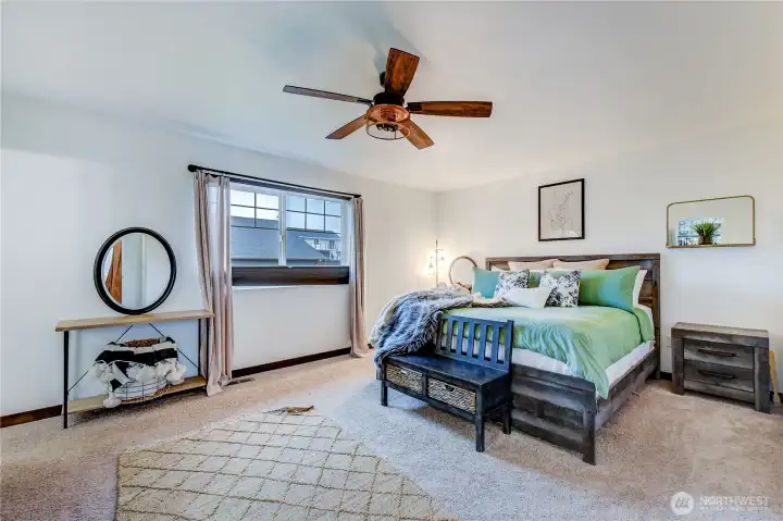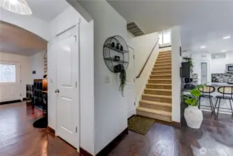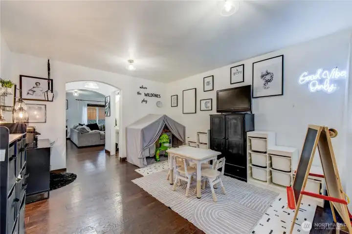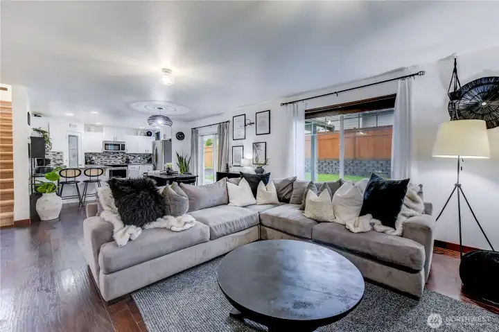 Beautifully maintained home on a spacious lot, offering modern charm and everyday convenience. Hardwood floors span the main level, and the kitchen features granite countertops, stainless steel appliances, and a walk-in pantry, opening to a great room concept ideal for entertaining. A cozy family room with a gas fireplace adds warmth and character. Enjoy the covered patio leading to a fully fenced, large backyard. Upstairs features a spacious primary suite with walk-in closet and 5-piece bath, two additional bedrooms, a full bath, convenient laundry room, and loft space. A versatile flex room downstairs offers endless possibilities, plus a two-car garage. Community park and playground nearby and close to all city services! Welcome Home!