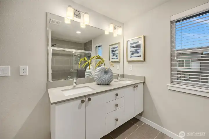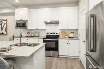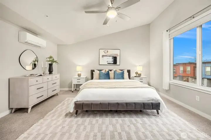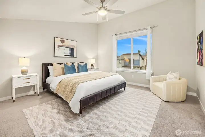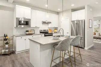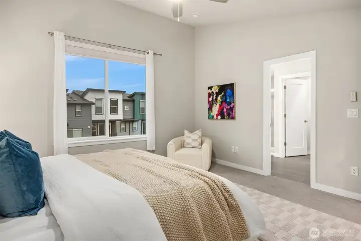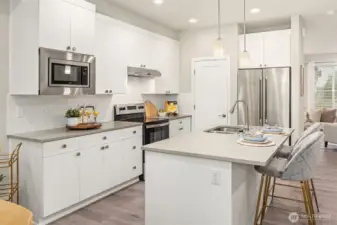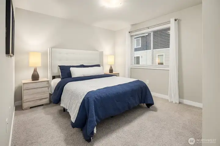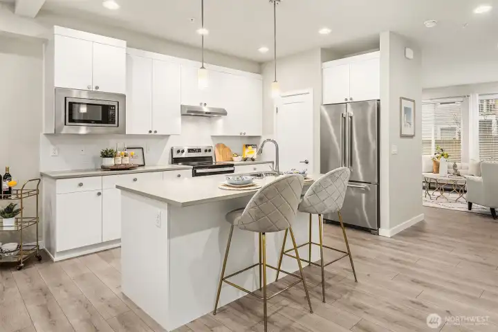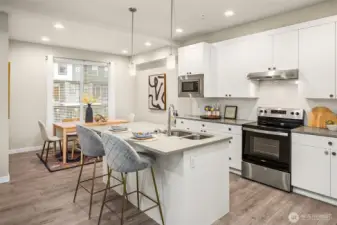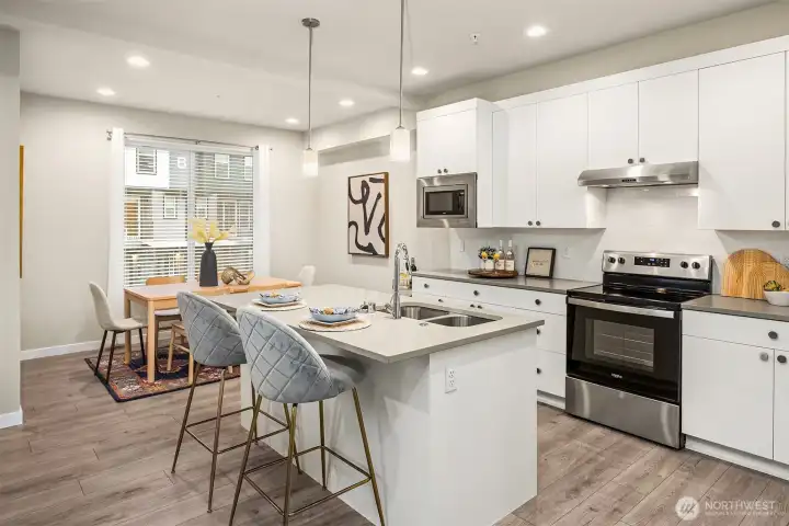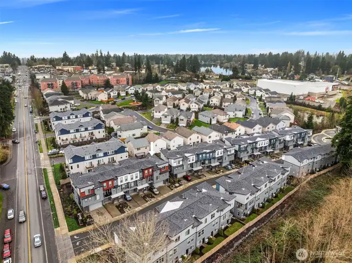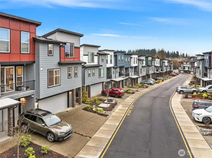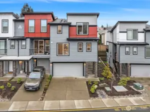 Better than new, this stunning 4-bedroom, 3.25-bath end-unit modern townhome offers refined design and exceptional comfort in a beautiful neighborhood. Enjoy a two-car garage with EV charger, and a gourmet kitchen featuring sleek finishes, contemporary cabinetry, and an open-concept layout filled with abundant natural light. The main level includes a convenient powder room, perfect for entertaining. Generously sized bedrooms provide flexibility, while the luxurious primary suite boasts a vaulted ceiling and ample space for relaxation. The lower level features a private bedroom with en-suite bath and separate access, ideal for guests or multigenerational living. Ideally located near Alderwood Mall, shopping, dining, and with easy access to I-5 and I-405—this home is designed for elevated, modern living.
