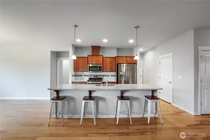 Take a look at this beautiful, practically new home on a corner lot in the desirable Summerset Neighborhood. The open floor plan flows seamlessly from the living room to the kitchen and dining area, creating an inviting space for everyday living and entertaining. Tall ceilings in the living room pair perfectly with hardwood flooring throughout, adding both warmth and a sense of openness. The kitchen features granite countertops, a large island, and upgraded cabinetry with custom drawers in place of standard shelving. The spacious primary bedroom offers two walk in closets and a five piece en suite bathroom. Venture outside to enjoy the large covered patio and fully fenced backyard with stunning mountain views. There’s so much to see, so come see it for yourself.