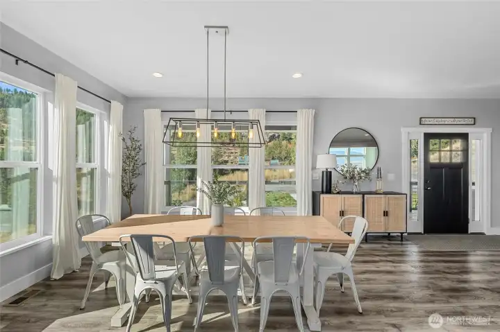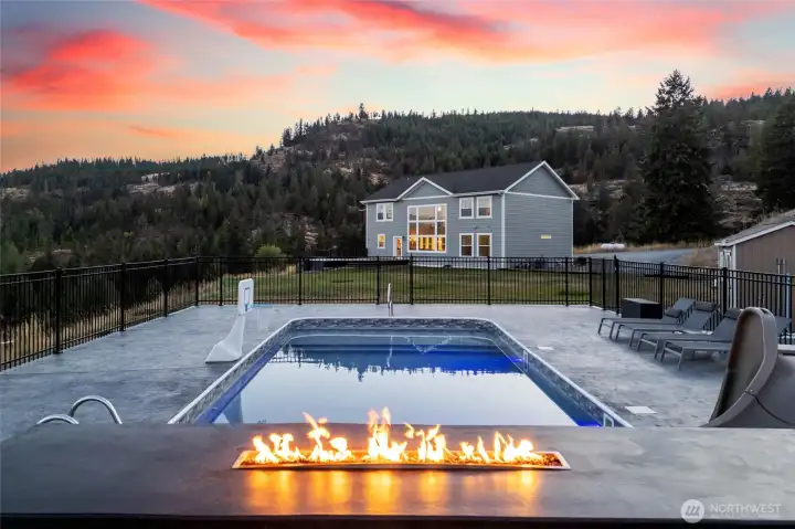 Discover breathtaking views & modern elegance in this stunning 4-bedroom, 3-bath home situated on over 6 acres overlooking the Colville Valley. Sunlight floods thru expansive picture windows, highlighting the kitchen w/concrete counters, gas range & walk in pantry, dining area & vaulted living room. The main floor boasts a spacious primary suite w/a luxurious tiled walk-in dual head shower, double sinks & closet w/laundry facilities conveniently located nearby. Upstairs, there's three bedrooms, loft area, den/office & full bath. The spacious unfinished basement, insulated & wired w/garage access, offers endless possibilities. There's a heated saltwater pool w/gas open flame firepit, hot tub & deck.