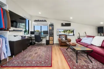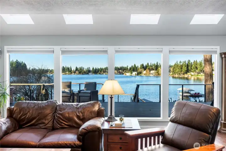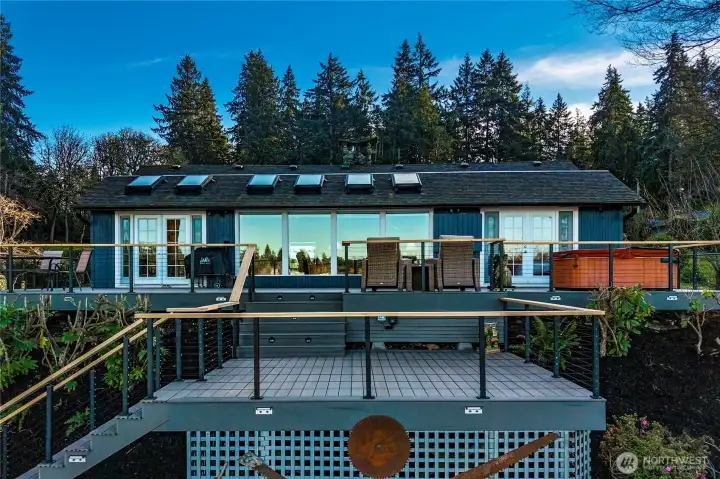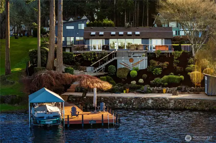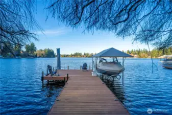 Summer is right around the corner and this Lake Steilacoom house has everything you are looking for. 77 feet of waterfront, large dock, expansive 1300sqft. new timbertek deck and automatic boat lift with new cover all make this home complete and perfect for hosting during the PNWs long summer days. Dream of skiing, tubing, seadooing, and wake surfing on one of the best lakes in western Washington. Enjoy the lakes many community events including the 4th of July boat parade, Christmas Day Santa ski, and more. This mid century modern rambler includes 3 beds and 1.75 baths with lake views from the kitchen, living room, and primary bedroom. The NEW 3 car garage includes an ADU that is approximately 940 sq ft. With 1bed/1bath, kitchen and two generous living spaces, golf sim setup plus plenty of storage.