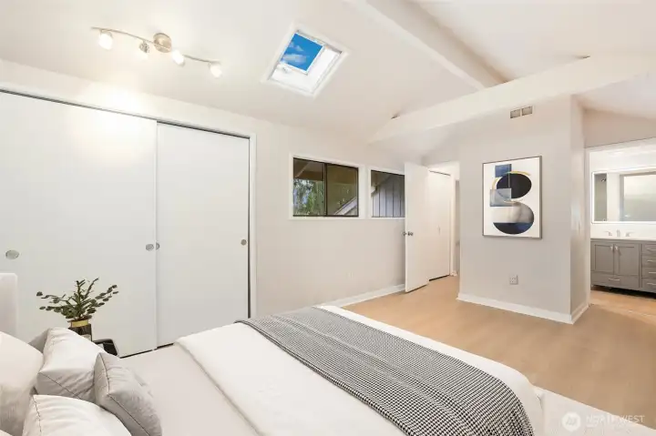 Beautifully updated 3-bedroom, 3.5-bath townhome in the highly sought-after Kennydale neighborhood. This home features three completely remodeled bathrooms plus a convenient half bath on the main level. Vaulted ceilings, skylights, and abundant natural light create an airy, open feel throughout. The updated kitchen offers ample counter space, a large pantry, and is perfect for both everyday living and entertaining. Enjoy exceptional indoor-outdoor living with three separate decks. Home backs up to a peaceful greenbelt for added privacy. The spacious primary suite provides a relaxing retreat, while the private detached garage adds convenience. Located near multiple parks with easy freeway access, this home combines comfort, style, and an unbeatable location.