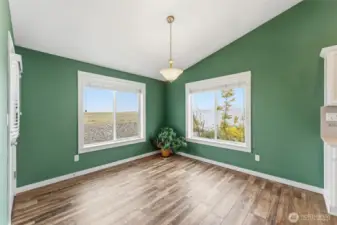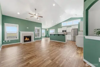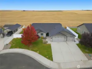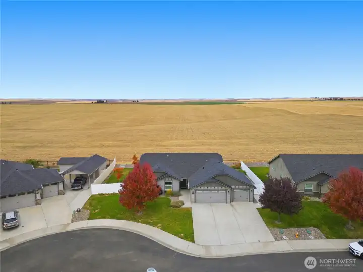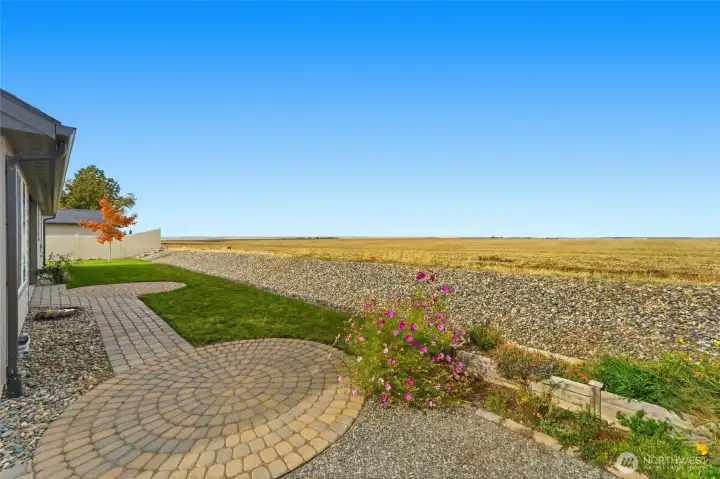 Discover beautiful sunsets, mountain views, and rolling Palouse lightscape, with quiet living in a single-level home designed for comfort an dease. An open lay out of high ceilings and large windows, accent a generous living area. A fireplace, dining alcove, and kitchen with walk in pantry come together for easy living and smooth entertaining. A recessed entry with coat closet adds a welcoming touch. The yard has a large side area, garden and relaxing space with raised beds. A concrete pebbled pad for outdoor furniture and a gas grill connection invite friends and other household members to enjoy the outside. An extended 3 car garage compliments the outdoor living space.