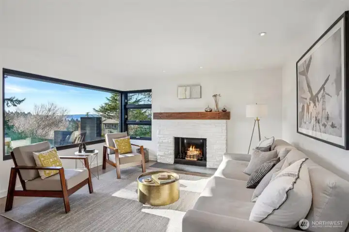 This is it, the perfect mid-century modern home with beautiful landscaping and gorgeous views of the Sound. Exceptionally remodeled from top to bottom, this residence blends iconic architectural style with today’s most desirable updates. The lower level offers the flexibility to serve as a full primary suite, complete with a walk-in closet and a stunning, updated bathroom, creating a private retreat ideal for relaxation. Spacious living and dining areas showcase the home’s timeless design while embracing modern comfort, making it perfect for both everyday living and entertaining. Thoughtfully designed landscaping enhances the serene setting and outdoor enjoyment. A true classic, reimagined for today’s contemporary lifestyle, this home offers style, comfort, and views in one exceptional package.