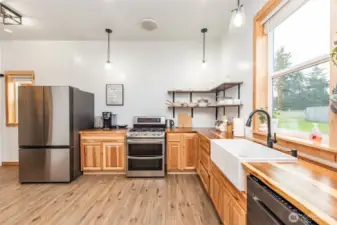 Mountain View Property! This exceptionally versatile property offers space, comfort, and flexibility for everyone. The main home (2,320 SF) features true single-level living with a primary suite complete with a full bath, separate shower, and jetted soaking tub, along with an office, great room, full kitchen, and laundry on the main floor. Upstairs provides a private extended-living setup with a kitchenette, living area, two bedrooms, a full bath, and its own laundry perfect for multigenerational living or guests. Car enthusiasts and adventurers will love the massive 1,394 SF RV garage featuring indoor hookups, two additional vehicle bays, a ¾ bath, laundry, and a beautifully finished 508 SF bonus space with a kitchenette. Outside is an additional RV hookup, garage shop, pickleball court, greenhouse, garden area and hot tub.