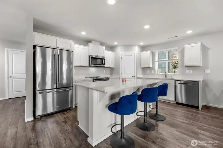Welcome home to this beautiful 4-bedroom, 2.5-bath property in the desirable Ridgefield community, perfectly located just minutes from the freeway, dining, and shopping. The main level features engineered hardwood floors and an open floor plan ideal for modern living and entertaining. The spacious living room offers a cozy fireplace and flows seamlessly into the dining area with a slider leading to the backyard patio. The kitchen is a standout with stainless steel appliances, quartz countertops, a large island with eat bar, and a corner pantry for plenty of storage. Upstairs, you’ll find 3 bedrooms plus a versatile large 4th bedroom or bonus room, 2 full bathrooms and laundry room. The primary suite includes a walk-in shower and a walk-in closet. Outside, enjoy a fully fenced backyard with a large patio, perfect for summer BBQs or quiet evenings. Additional highlights include a 2-car attached garage and a location that blends comfort with convenience. This home checks all the boxes—don’t miss your chance to make it yours!