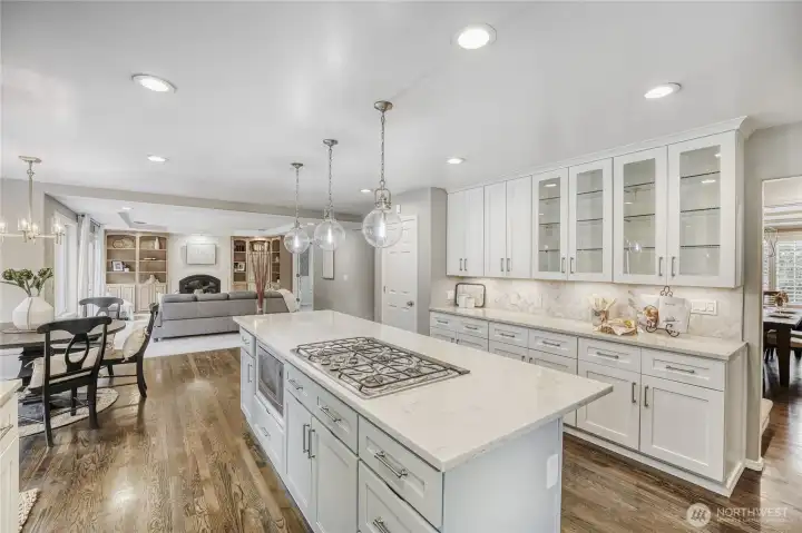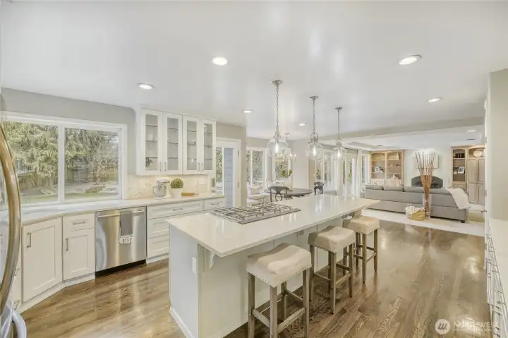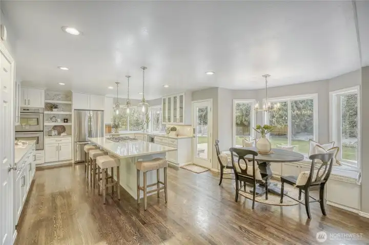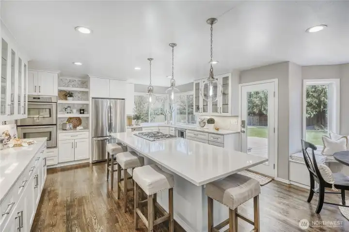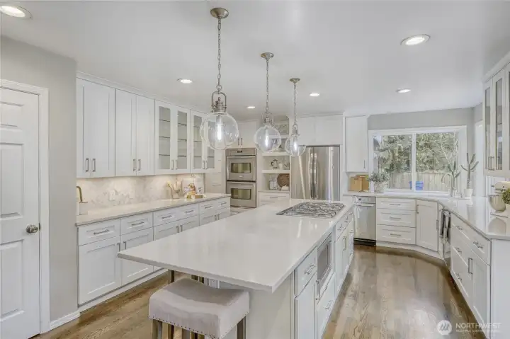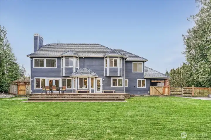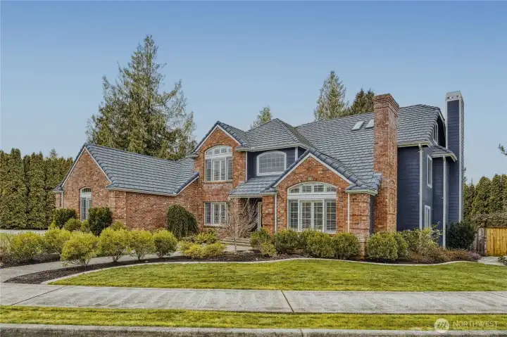 Stunning home w/ Mt. Rainier view from the primary suite. Features a curved wall entry, spacious Den and DR, a chef’s kitchen with large island, modern cabinetry, quartz counter tops and hardwood floors. Perfect for entertaining as the kitchen is open to the generously-sized family room w/ fire place. A master retreat with vaulted ceilings, an incredible view and a spa-like bath. 3 additional bedrooms, a rec room and 3rd-floor loft. Renovated laundry/mud room w/ extra half bath. Modern color schemes with fresh interior paint. Timeless brick exterior, tile roof, & stylish landscaping which includes a water feature. Situated on a huge .46acre lot that's fully fenced. A very private backyard, Trex deck and play equipment. A/C, 3-car garage, wired for generator and abundant storage.