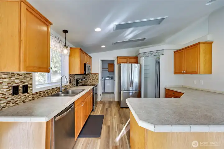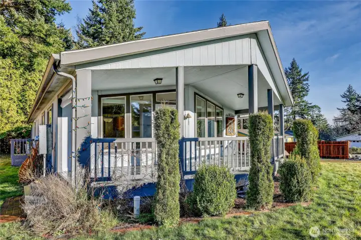 Bright and welcoming, this well-maintained one-story home is ideally suited for those looking for quiet and peace with great location in the Port Hadlock Heights community. The open kitchen flows easily into the dining and living areas, offering a relaxed space for everyday living and entertaining family or friends. Abundant counter space, a walk-in pantry, and newer appliances make meal preparation simple and enjoyable. Vaulted ceilings add an airy feel to the living room, which opens to a large, covered front porch—perfect for morning coffee or evening relaxation. A conveniently located laundry room off the secondary entrance doubles as a practical mudroom. Recent interior paint and new carpeting add to the move-in-ready appeal. The spacious primary bedroom features a deep closet, while an additional guest room and office provide flexibility for visitors or hobbies. The home is positioned on the lot to allow room for a future shop or garage, and its end-of-neighborhood location offers added privacy. With a new water heater and an affordable price point, this home is an excellent option for those seeking comfort, convenience, and peaceful living in the tri-area.