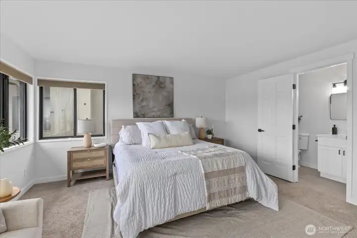 Lakefront Living! Welcome to this fully updated end-unit townhouse in a gated community on beautiful Spanaway Lake. Enjoy direct lake access, a cozy fireplace, & an expansive kitchen & dining area perfect for entertaining. This home features sleek quartz countertops, high-end appliances, & luxury flooring throughout. Upstairs, floor-to-ceiling windows fill the home w/ natural light & showcase water views, private backyard deck. Amenities include a dock, boat launch, clubhouse, RV/boat storage, tennis court, & swimming pool. Two parking spaces & every modern convenience, this rare end-unit seamlessly blends style, comfort, & lifestyle. Don’t miss the opportunity to experience lakefront living at its best. Welcome home!