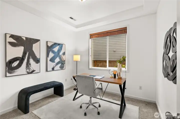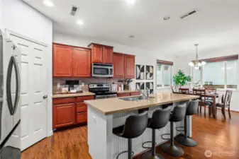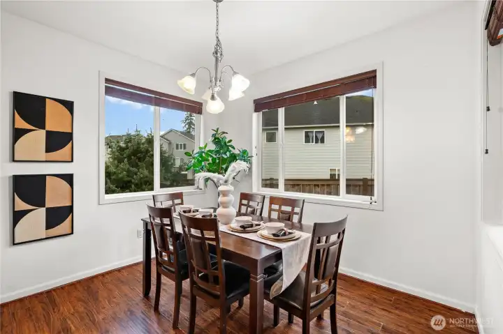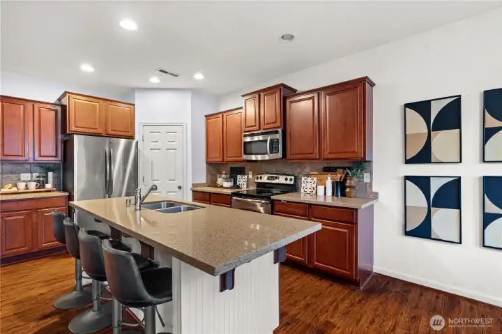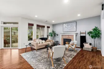 Welcome to this beautifully maintained home in the heart of Puyallup. Light-filled open-concept living features warm hardwood floors and elegant arched entryways. The spacious kitchen flows seamlessly into the dining and living areas, perfect for entertaining. Enjoy the indoor fireplace or relax year-round on the covered patio with outdoor fireplace. Flexible upstairs space ideal for a home office or bonus room. Fully fenced, low-maintenance yard and conveniently located near schools, parks, shopping, and commuting routes. Move-in ready.