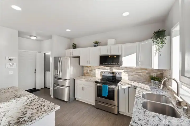 Welcome to this well-appointed 3-bedroom, 2.5-bath home where thoughtful finishes and comfortable design come together. The spacious main level features an open layout with a generous living area and inviting fireplace—ideal for both everyday living and gatherings. Durable LVP flooring runs throughout, complemented by granite countertops in the kitchen for a polished, modern feel. Upstairs, the primary suite offers a private retreat with an en-suite bath featuring a soaking tub and separate shower. Step outside to a fully fenced backyard, perfect for relaxing or entertaining. Conveniently located with quick access to I-5 and the new Tacoma Dome Sounder Station, this home makes commuting to Seattle or JBLM easy. Nearby parks, schools, local shops, and dining add to the everyday convenience, while downtown Tacoma, museums, the waterfront, and the Tacoma Mall are just a very short drive away. Schedule your showing and experience this home for yourself.