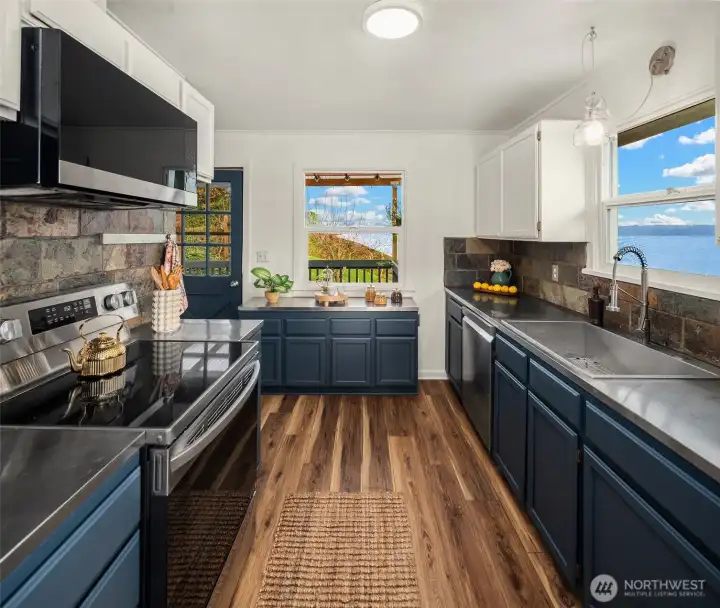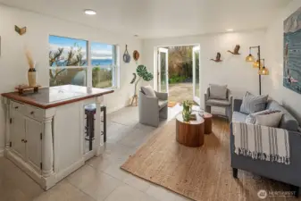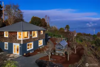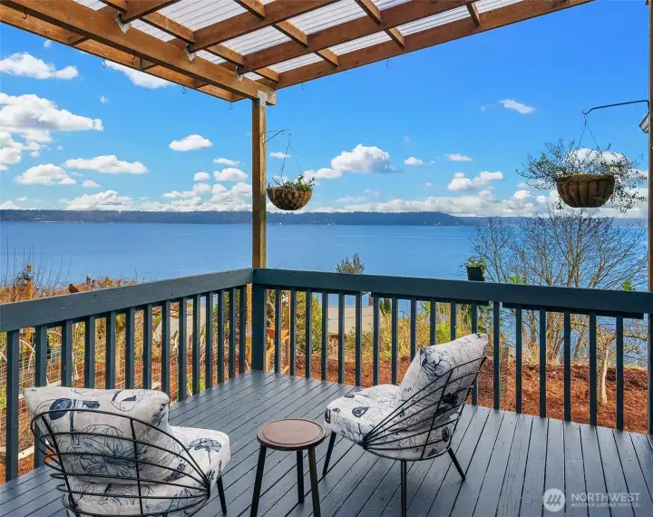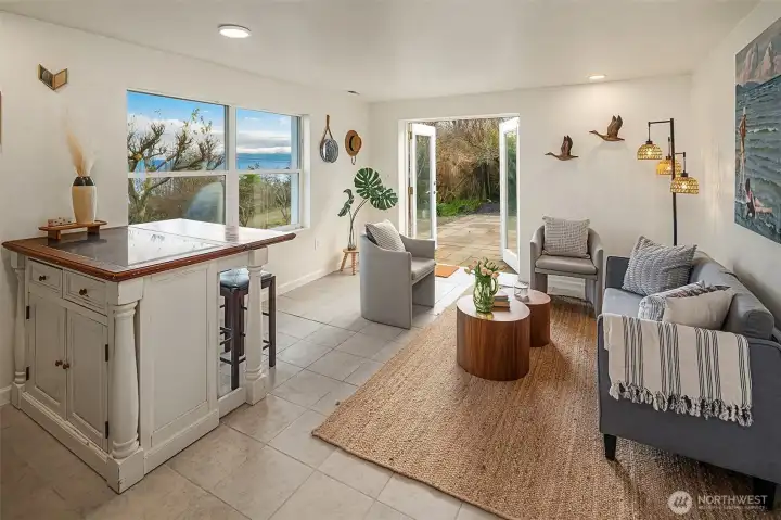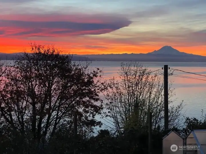 Turn-key cottage with a breezy, beachy feel and unforgettable sunrise and sunset views, including splendid Mt. Rainier and city vistas. Enjoy generous outdoor living with space for fireside chats, relaxing on the deck, and a fenced garden area with greenhouse—tend your garden while soaking in the view! The main level features a cozy kitchen with new range, inviting living room with beautiful views, two bedrooms overlooking the peaceful backyard, and a full bath. The separate daylight basement offers exceptional flexibility with a kitchenette, living space, 3/4 bath, washer/dryer, and two additional rooms ideal for guest quarters, office, or hobby space. Perfect for rental potential, multigenerational living, or hosting overflow. Nestled in the beloved Dilworth area, this home is full of classic Vashon charm and easy island living.