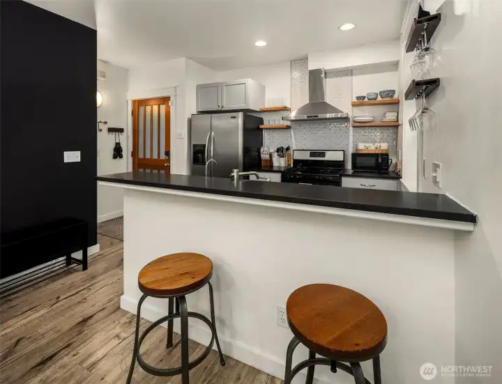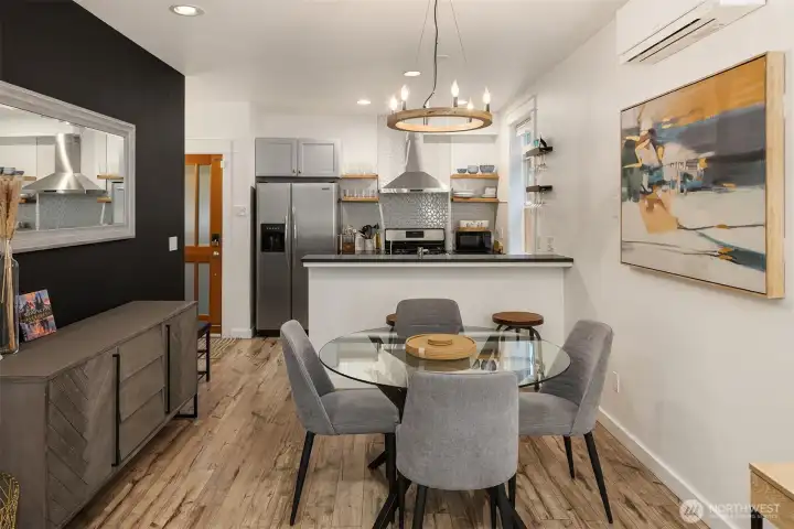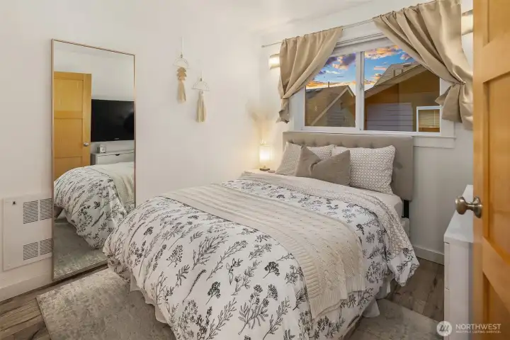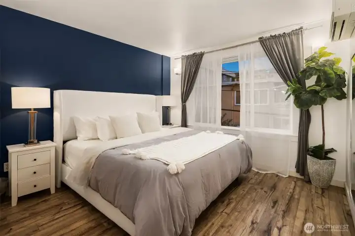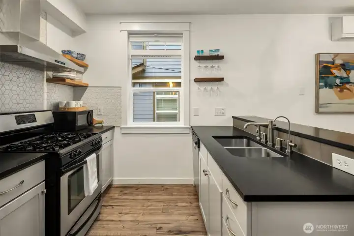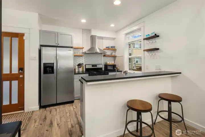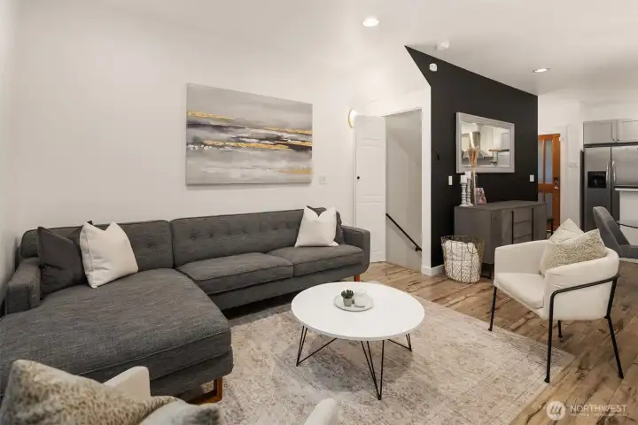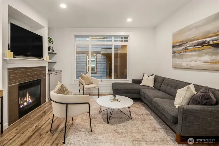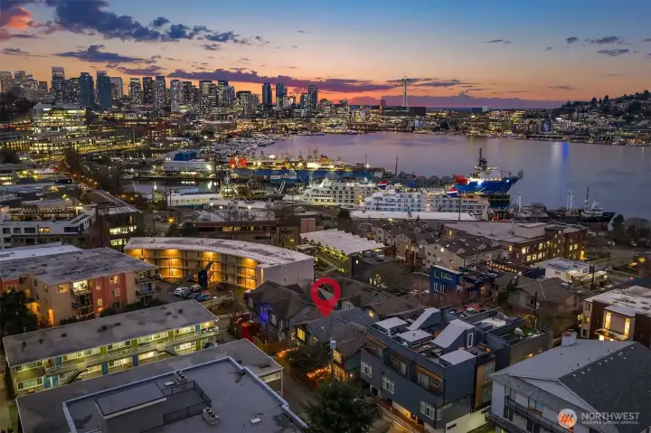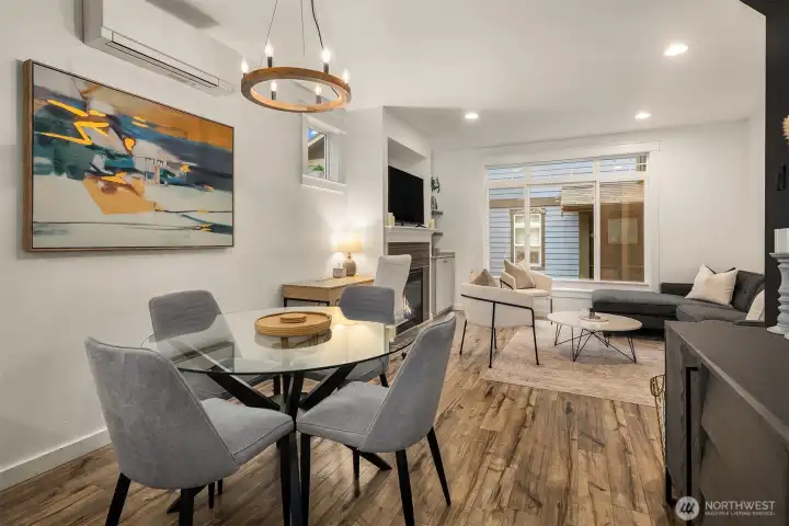 This Eastlake townhome combines thoughtful design with everyday livability in a prime location just steps from cafes, restaurants, and Lake Union. Step inside to an open layout with abundant natural light creating a welcoming flow. The kitchen—anchored by a peninsula island with bar seating and a gas range—serves as a natural gathering spot. Enjoy your evenings and settle in by the gas fireplace, a subtle comfort that makes the space feel instantly like home. Upstairs, the primary suite provides a quiet retreat with a spa-inspired bath and generous closet. A versatile second bedroom easily adapts as a guest room or home office, complemented by a full bath and convenient upper-level laundry. Outside, the fully fenced front patio provides space for a small garden, afternoon reading, or relaxing at the end of the day. Complete with efficient mini-split AC/heat, a lower-level third bedroom, and an attached garage offering abundant storage, this home delivers effortless comfort, urban accessibility, and that signature Eastlake charm you won't want to miss.