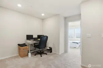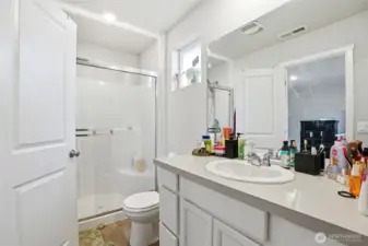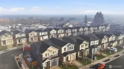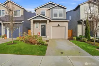 Refined and move-in ready, this beautifully maintained 3-bedroom, 2.5-bath residence offers a sought-after floor plan filled with natural light. The designer kitchen features crisp white cabinetry, quartz countertops, stainless steel appliances, and a generous pantry, seamlessly flowing into the dining area and great room for effortless entertaining. Laminate flooring enhances the main level, complemented by smart home technology, air conditioning, and a fully fenced outdoor space. Ideally situated near premier shopping, dining, and major commuter routes, this home delivers both sophistication and convenience.