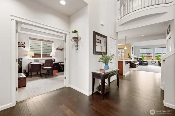 Welcome home to this beautifully built home in Steilacoom Ridge. The Pine model offers 2457 sf featuring luxurious living! The main level includes a primary suite w/ 5-piece bath & 2 bedrooms one which could be used as a bedroom or office. The upper level offers the 4th bedroom plus flexible space ideal for a bonus room. Enjoy extensive hardwood flooring, beech cabinets throughout with full extension guides and soft closure, white painted millwork. Outside you will find a covered back porch, fully landscaped front and back yards w/privacy fencing in the backyard. Ideally located just minutes from I-5 and Hawk’s Prairie shopping, with a short commute to JBLM.