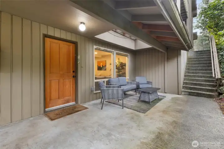 Welcome to Parkview Firs! Unit #103 is neatly tucked away within the park like setting of this amazing community. As you walk through the front door, you'll find a spacious, open family room with beautiful hardwood floors, complete with a fireplace. Down the hall is your guest bath, laundry room and pantry. Take in your fully updated kitchen, with stainless steel appliances, new stove, range hood, designer backsplash, and farm sink with plenty of cabinet and counter space to meet your cooking and storage needs. Your dining area leads to your backyard private oasis, perfect for relaxing and entertaining. Upstairs you'll find your primary bedroom with large walk-in closet and fully remodeled bathroom. Your guest room/office is just down the hall and has it's very own walk-in closet and full bath! This home comes with it's own garage that offers extra storage, an additional designated parking spot and guest parking nearby. The low HOA of only $450 a month gives you access to the community pool and clubhouse, a sport court and private park to enjoy Goodhope pond. The location is outstanding and you'll be amazed how quickly you can be in downtown Edmonds just a bit further down Main Street to enjoy the parks, restaurants, coffee shops, waterfront scenes and ferry access. For commuters, I5 access, Edmonds Park and Ride and Lynnwood Light Rail station are minutes away.