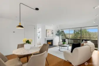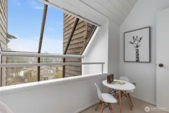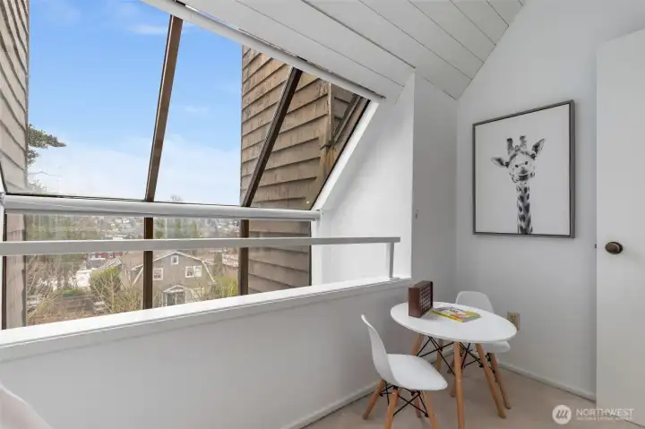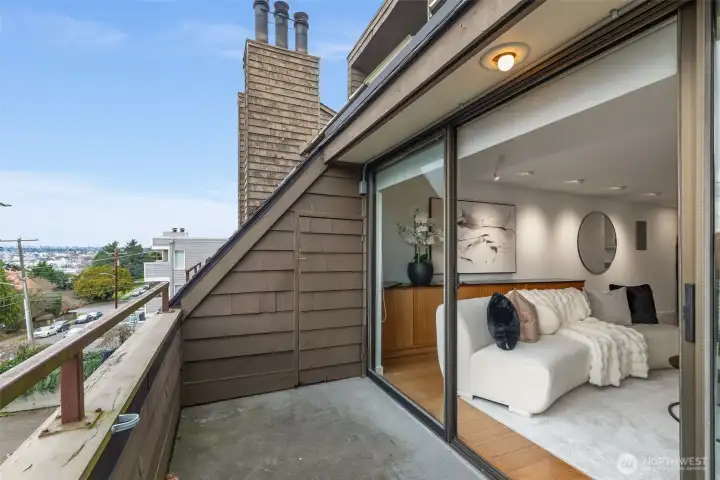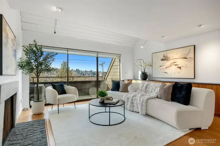 This is a rare opportunity to live in a great Queen Anne neighborhood! Very cool top Floor, two Bedroom, two level home with its own separate entrance and quintessential views of Seattle that will remind you everyday how beautiful the city is. As you enter, you'll be struck by how much natural light dominates the space. The main level offers one bedroom, a full bathroom, laundry, a large living room with wood burning fireplace, office space, hardwood flooring, as well as a nice deck to take in the views. Upstairs you will find the primary suite and a bonus room that would serve well as another work space, yoga room or play room. Freshly painted interior, A/C, lots of storage, no rental cap! Unbeatable location, close to Downtown, Ballard/Fremont, SPU, Parks, Transit, Entertainment and Dining.