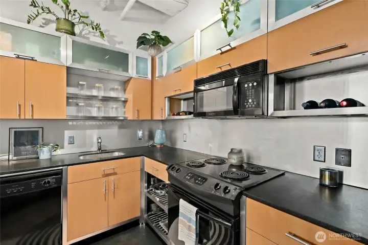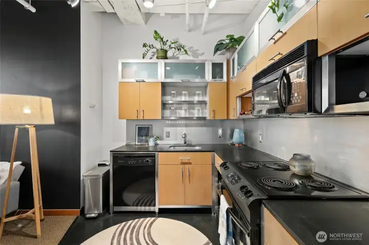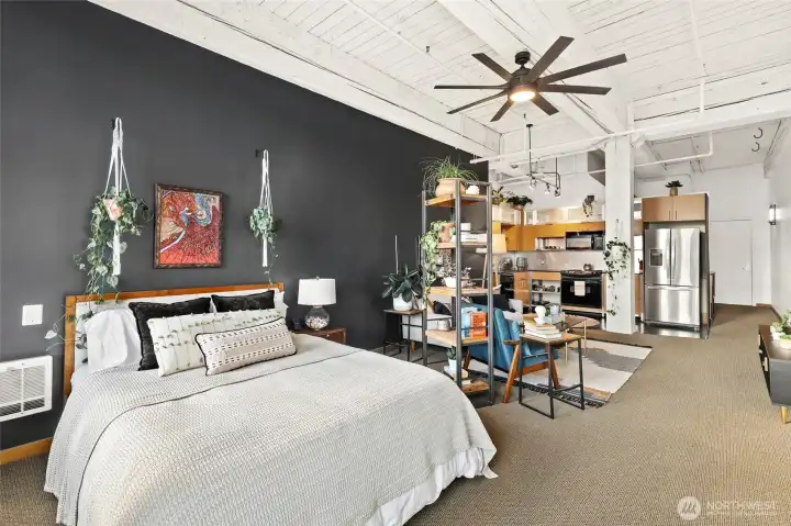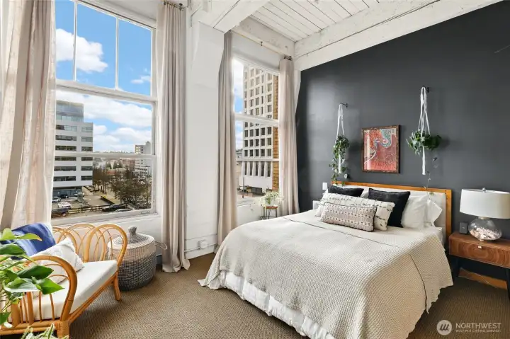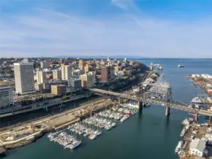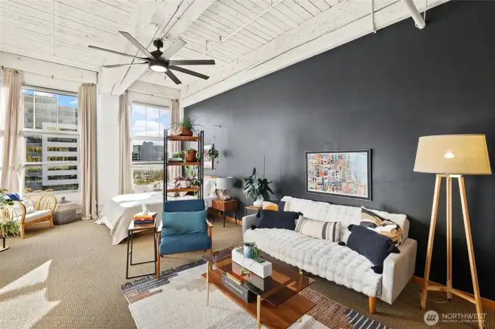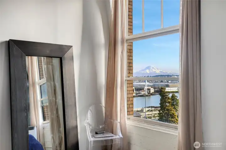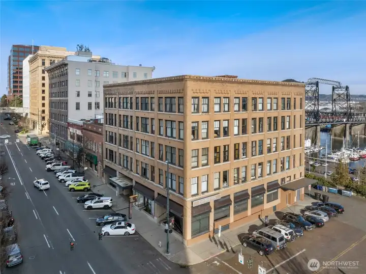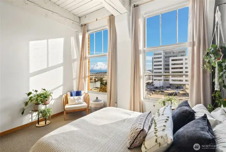 Move-in ready condo with stunning views of Mt. Rainier, the Waterway, and the Tacoma Dome! Located in Cliff Street Lofts, this home blends classic charm with modern living in downtown Tacoma.The bright unit features 14-foot ceilings, exposed industrial beams, and expansive windows. Enjoy an updated kitchen, new light fixtures, built-in curtains, ample storage, and a walk-in closet with a washer/dryer combo.Relax on the rooftop deck with 360-degree views of the city and Commencement Bay. Just steps from entertainment, dining, shopping, UW Tacoma, and the Link Light Rail, with easy access to I-5 and the Sounder. Urban living at its best!
