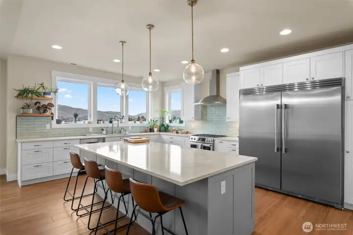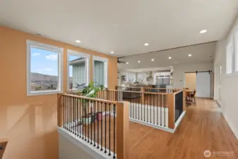 Custom built home with sweeping views tucked into the peaceful hills of the Wenatchee Valley. This impressive two-story home in the desirable Broadview neighborhood features high end finishes, soaring ceilings, and light-filled living spaces designed for comfort and style. The upper level showcases a stunning open concept layout with panoramic views, a living room with a beautiful gas fireplace, and a chef’s kitchen complete with a gas cooktop, oversized island, and spacious butler’s pantry. The primary suite is also upstairs, offering a spa-like bath, walk-in shower, and second laundry area. The lower level includes two generous bedrooms, a large family room, and a full laundry room. The 1,000+ sq ft garage offers three bays and a 30-amp RV hookup. Enjoy expansive view decks, level lawn space, and direct access to the Sage Hills trail system right out your back door.