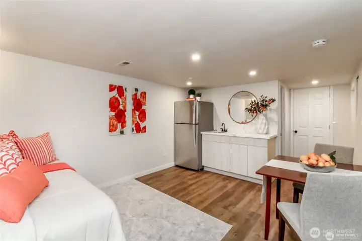 Location, location, location. This home is ideally situated near the entrance to Puget Park Trail and the Puget Creek Natural Area. Enjoy a tranquil, tree-covered trail that leads directly to the Ruston Way waterfront. Just minutes away are the charming shops, dining, and Saturday Farmers Market in the Proctor District. The expansive, light-filled yard is perfect for the urban gardener and outdoor enjoyment. The private patio offers a covered area as well as open air. Great storage area for all of your gardening needs is artfully tucked away. Inside, the home was beautifully remodeled in 2022 and features an open living, dining, and kitchen area filled with natural light. Three bedrooms are located on the main level, including a primary suite with an attached bath. Down the hall is a spacious family room with a cozy wood burning fireplace, offering wonderful additional living space. New HVAC with heat pump to keep you comfortable year-round. Downstairs is a versatile ADU with a kitchen area and a three-quarter bath. With a dedicated waiting area, it is ideal for a home business, guest suite, or flexible living arrangement. Storage abounds throughout the home, including a finished upper storage area accessed by pull-down stairs. This home offers an exceptional combination of location, tranquility, and flexibility in one of North Tacoma’s most sought-after neighborhoods.