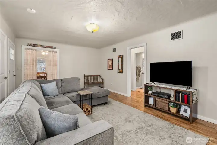 Beautifully maintained and thoughtfully updated, this cozy Puyallup home offers comfort, flexibility, and timeless charm. Recent updates include newer siding, fresh exterior paint, updated interior doors, and durable grade-4 porcelain tile flooring. Original hardwood flooring with a Swedish finish runs throughout the home, adding warmth and character. The remodeled kitchen flows seamlessly into the main living spaces, while a gas fireplace insert and A/C provide year-round comfort. The fully fenced backyard offers ample space for gardening, entertaining, or relaxing outdoors. A detached 312 sq ft cottage with a ¾ bathroom provides versatile flex space, perfect for a home office, studio, or hobby room. Conveniently located near schools, shops, restaurants, easy freeway access, and just minutes from the train station for easy commuting to Seattle.