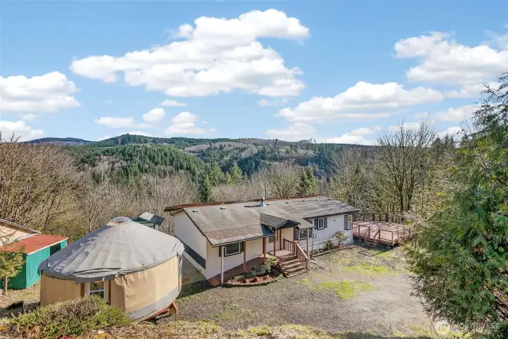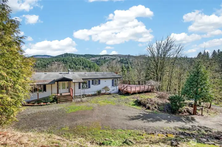 Welcome to your own private retreat, where peaceful surroundings and mountain views set the tone for relaxed living. This refreshed home offers an open-concept layout with laminate flooring, new carpet, fresh interior paint, and a cozy wood-burning fireplace for added warmth and charm. Step outside to an expansive property offering a rare combination of usable space and functional improvements. The substantial 36x60 barn features three matted stalls, a tack room, and an indoor riding arena for all-season use, complemented by multiple storage buildings and RV parking with hookups. A creek-fed pond adds to the peaceful outdoor setting, ideal for gatherings or quiet evenings. An exceptional opportunity to own a versatile property that offers privacy, space, and endless potential!