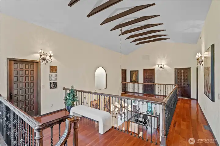 Beyond the iron gate and sweeping driveway you will find an extraordinary Spanish colonial estate that evokes old-world romance, quality craftsmanship, and a sense of timeless grandeur on a sprawling property that offers exceptional versatility. The smooth stucco facade, arched doorways, and ironwork create an elegant balance of strength and beauty. Inside the 6,360 sqft main residence, dramatic architectural details will take your breath away. Towering ceilings with exposed beams, decorative iron banisters, arched windows, gorgeous solid wood doors with original wrought iron hardware will have you in awe. The chef's kitchen, featuring a large center island, is just off the dining room with space to host every holiday meal. Main floor contains two sizable living spaces and an office. With laundry hook ups upstairs and down, the washer and dryer can be moved back downstairs if one prefers, but the utility room off the garage doubles as an adaptable pantry or mudroom. Open air second floor mezzanine landing connects three generous sized bedrooms, two with wonderful walk in closets. Fully finished basement is equipped with home theater projector, full wet bar, sauna with shower, and access to covered outdoor room with built-in fireplace, inground pool/hot tub. A separate 2,100 sq ft DADU offers ideal guest house or multigenerational living. Set on five private acres, including equine grounds with barn and paddock ready for restoration or option to subdivide the back 2.5 acres.
