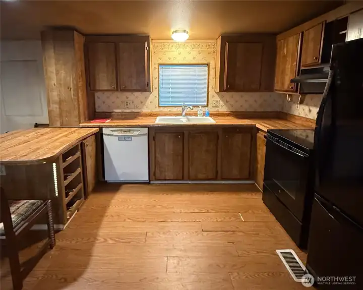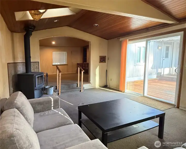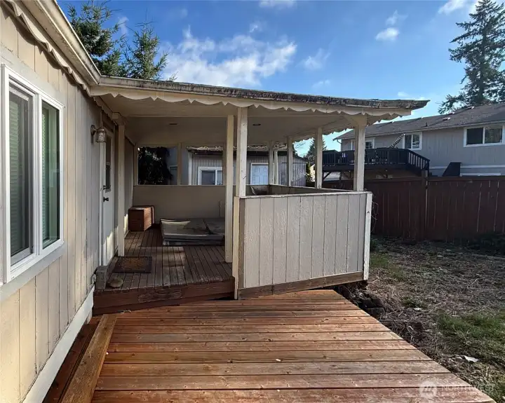 Investor opportunity in desirable Bonney Lake on a shy ¼-acre lot. Fully fenced with concrete slab parking, covered front porch, and a spacious backyard offering room to enhance outdoor living. Property includes a gazebo with hot tub and a storage shed. Interior highlights include a large family room, vaulted cedar ceilings, skylights, and a free-standing wood stove. The kitchen opens to the living area, creating a functional layout with renovation potential. Bay windows add natural light, and the primary bedroom offers ample space for future upgrades. Ideal for investors or owner-occupants looking to add value through updates and personal touches. Solid features, generous lot size, and a strong location make this a compelling sweat equity opportunity.