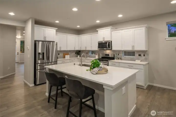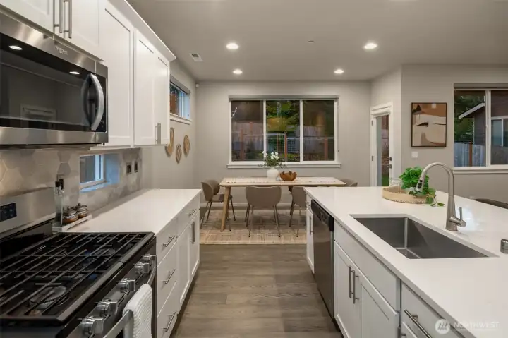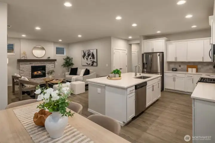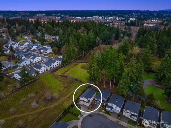 Ideally sited at the end of a quiet cul-de-sac in the desirable Coyote Crossing community, this impeccably maintained home offers exceptional privacy with a spacious, fully fenced backyard backing directly to a park and greenbelt - creating a rare, peaceful setting. The open-concept great room flows seamlessly into the gourmet kitchen and dining area, ideal for both everyday living and entertaining, while a main-floor bedroom with 3/4 bath provides flexible use for guests, a home office, or multigenerational living. Upstairs features a generous primary suite with a spa-inspired 5-piece bath and a large walk-in custom closet, along with two additional bedrooms, a versatile loft, full hall bath, and convenient laundry room. Better than buying new construction, this home is offered with high-end appliances, custom window coverings, custom built-in closet systems, central air conditioning, a security system, and a finished garage - saving both time and cost. All set within a quiet, boutique community of just 16 homes, ideally located between Bothell, Mill Creek, and Lynnwood with easy access to shopping, dining, and commuter routes.