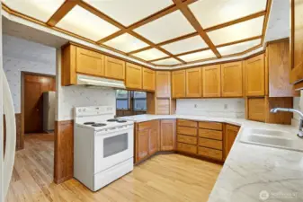 Welcome to this well-maintained 3 bedroom, 2.5 bath home nestled in a quiet neighborhood. The spacious living room is filled with natural light from large windows, creating a warm and inviting atmosphere. The kitchen offers abundant cabinetry and counter space, a casual dining area with a built-in desk, and seamless flow to both the living room and formal dining room featuring built-in cabinetry. The oversized primary suite boasts dual closets and a private bath with walk-in shower. Enjoy generous storage and built-in shelving throughout the home. Recent updates include a new furnace, water heater, and rear property-line fence. A wheelchair-accessible ramp enhances front entry convenience. The circular driveway provides ample parking, including RV space. Step outside to a level backyard with mature landscaping, apple and plum trees, and a large patio- perfect for entertaining. Ideally located near schools, parks, shopping, a movie theater, and freeway access. DADU/ ADU possible? Confirm with city. No HOA!