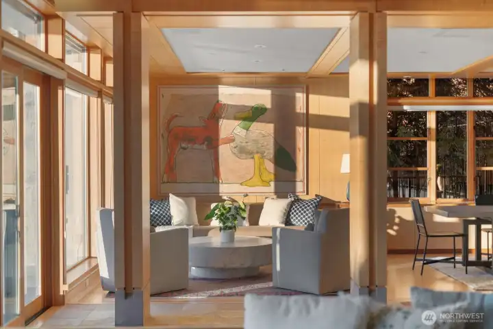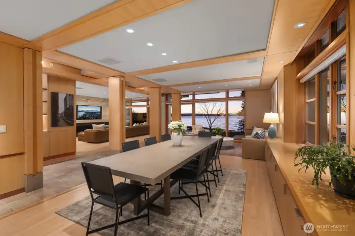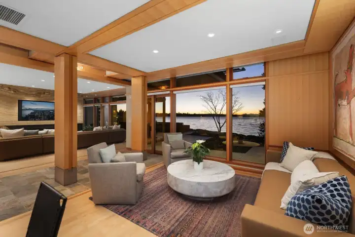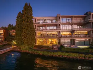 Remodeled by renowned architect Jim Olson of Olson Kundig, this exceptional Lake Washington condominium showcases his signature attention to fine millwork, paneling, and timeless design. Situated at the water’s edge, this rare single-level residence offers unobstructed views of Lake Washington, the Olympic Mountains, and the surrounding city skylines. The thoughtfully renovated kitchen, living, and dining spaces flow effortlessly together, creating an airy, light-filled environment with a seamless connection to the water beyond. A generous primary suite features an expansive walk-in closet and front gated yard for your pup, complemented by a second bedroom and bath. Additional highlights include a dedicated utility room and a separate mechanical room. Enjoy remarkable privacy while remaining just minutes from premier amenities. A comprehensive exterior refresh was just completed by the HOA, enhancing both curb appeal and long-term value. An exceptional home whose quality and presence are best appreciated firsthand.