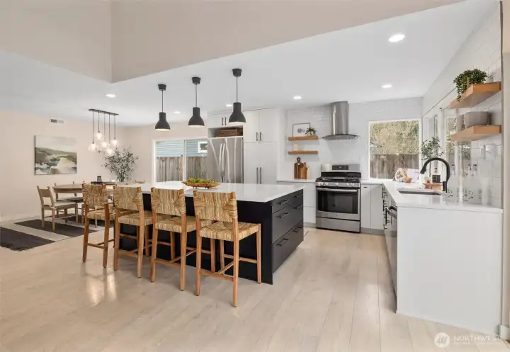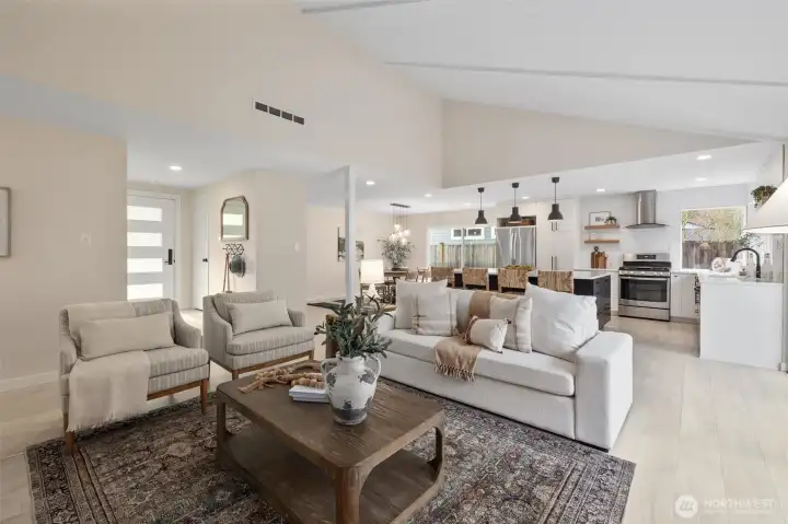 Beautifully Updated Rambler Ideally Located in the Heart of the Coveted Kingsgate 3&4 Community! This FULLY Remodeled Home Features 3 beds/2 bath and Spacious Open-Concept Layout Highlighted by Vaulted Ceilings with Large Kitchen, Living, Dining. Oversized Sliders Open to a Flat and Fully Fenced Backyard with a Large Tiered Trex deckâPerfect for Entertaining! The Finished Garage/Utility Room Comes Complete with a Brand New Washer/Dryer. Enjoy this Highly Sought after, Vibrant Community with Private Pool and Swim Team Access. Minutes to the NEW Village at Totem Lake, Sophisticated Woodinville Wine Country, Evergreen Hospital and Much More! Ideally located for Easy Commutes. AC! NEW Carpet! NEW Paint! Move in ready! LWSD