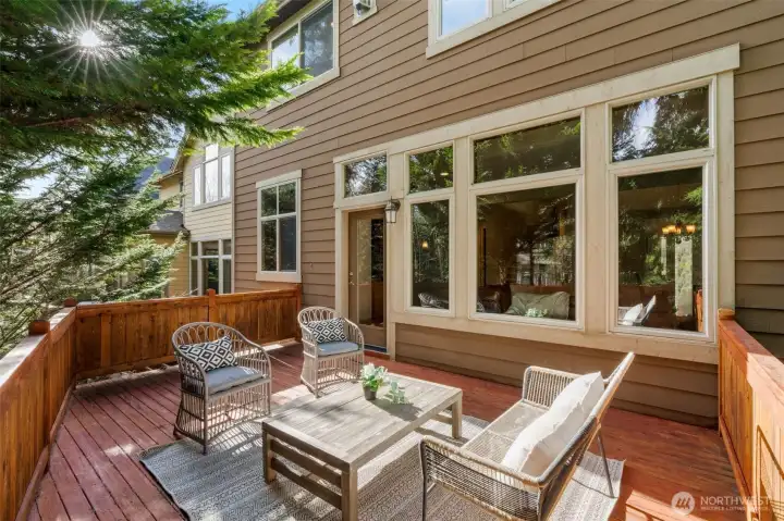 Nestled in the Beaver Lake community on the Sammamish Plateau, this beautifully crafted Sequoia/Burnstead resale home backs to 50 feet of serene greenbelt, offering privacy, natural beauty, and a peaceful setting. The main level features a bright, open two-story dining room, hardwood floors, and a versatile den/office with a nearby ¾ bath—ideal for guests or work-from-home flexibility. The chef’s kitchen is designed for entertaining with slab granite countertops, full tile backsplash with custom detailing, KitchenAid SS appliances, and double ovens. The kitchen flows seamlessly into the great room with custom built-ins and a gas fireplace, plus easy access to the spacious deck overlooking the greenbelt. Upstairs, the generous primary suite offers a true retreat with its own fireplace extending into the bedroom and bathroom area, a spa-inspired bath, and a walk-in closet. Additional upper-level bedrooms provide comfortable living space for household members or guests. The fully finished daylight lower level adds versatility with a bedroom/office, full bath, and large rec room with patio access—perfect for entertainment, guests, or multi-generational living. A private in-home sauna creates a relaxing, spa-like experience year-round. Additional highlights include abundant storage, two fireplaces, an attached 2-car garage, and HOA-maintained lawn care for easy living. Located within the Issaquah School District and just minutes from Beaver Lake Park, trails, and local amenities.