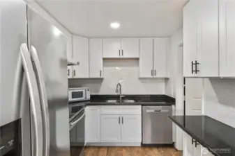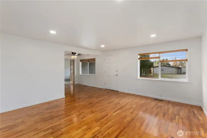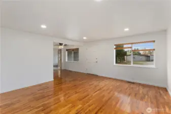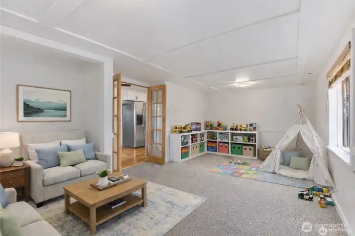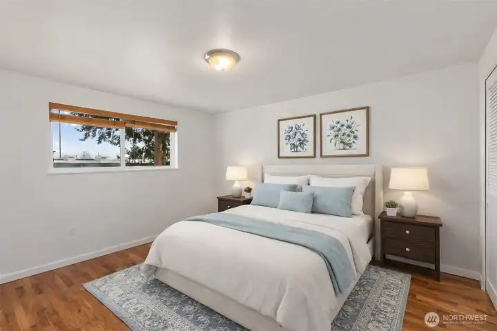 Charming well cared for one level living on HUGE fully fenced lot. Great floor plan with French doors from living area to versatile bonus room or spacious primary bedroom. Beautiful hardwoods throughout, large windows for natural sunlight, and good-sized bedrooms. Enjoy upgraded bath and kitchen with SS appliances, tile backsplash and updated cabinetry. Oversized level yard, perfect to relax, play and garden. Don’t miss shed for all your tools and projects. Ideally located just one mile away from Federal Way Transit center w/ Light Rail opening, shopping, dining and easy freeway access. 1 Year Free Home Warranty - Welcome Home!