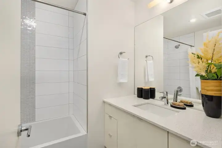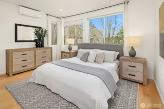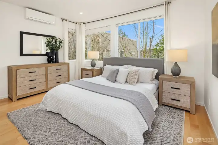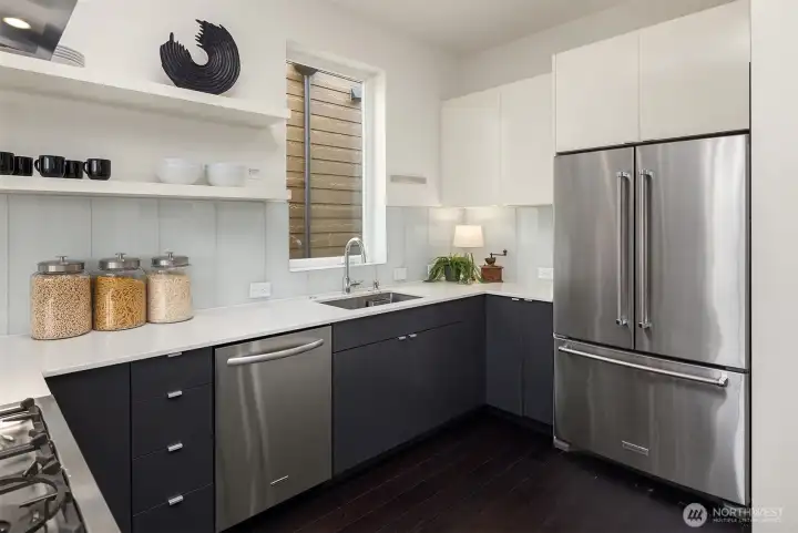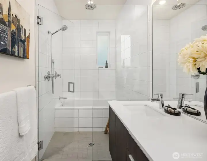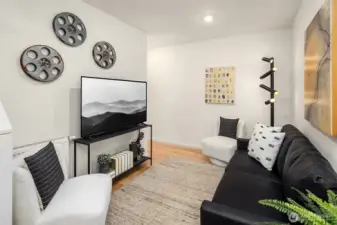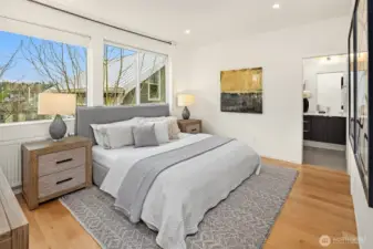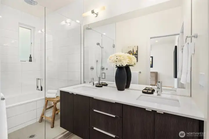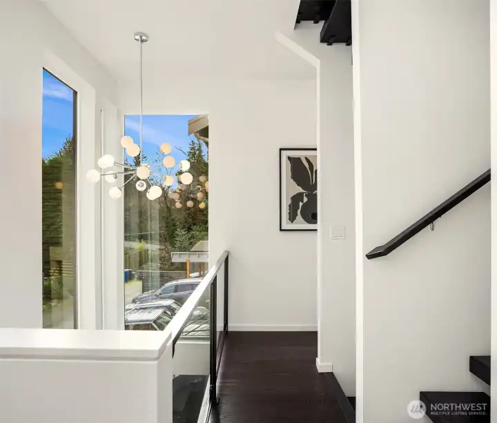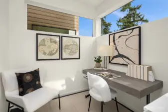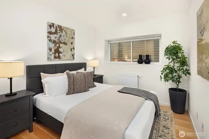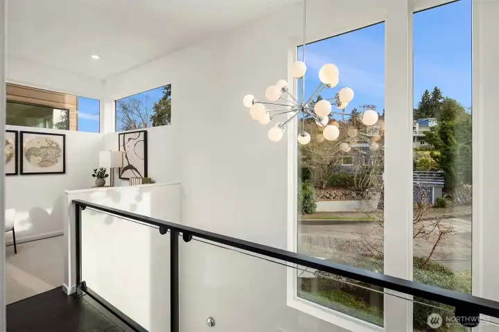 Modern architecture and intentional design converge on Queen Anne, where lofted spaces, sculptural lines, and elevated finishes create a living experience that feels both current and timeless. A dramatic double-height entry gives way to a floating wood-block staircase that connects each level with gallery-like clarity. The main floor unfolds into an open living, dining, and kitchen environment designed for entertaining and daily comfort. High ceilings and expansive walls offer space for art, while wide-plank floors and a soothing palette ground the interiors. The kitchen balances style and performance with a Bertazzoni gas range, french-door refrigerator, quartz surfaces, and open shelving that keeps the composition clean and functional. A separate den/office and powder room round out the main floor. One level up, a 750-square-foot roof deck plays host to a true outdoor living room with sweeping vistas of Elliott Bay. It’s the rare kind of space that invites true indoor-outdoor living: summer dinners, sunset cocktails, or quiet weekend mornings with a book. Programmable Lutron lighting controls allow for custom scenes, while mini-splits provide efficient year-round comfort. The garage is prepped for EV charging with ample built-in shelving. Set on the west slope of Queen Anne, moments to neighborhood cafes and restaurants, parks, Whole Foods, and transit, this home embodies a sophisticated yet relaxed way of living - architectural, connected, and undeniably Northwest.