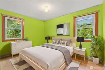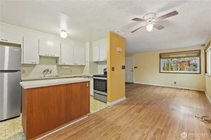 Perfectly positioned in one of North Seattle’s most desirable pockets, this charming single-level home sits on a large, flat lot with valuable alley access. The thoughtfully designed layout features beautiful laminate floors throughout, vinyl double pane windows with two comfortable bedrooms & one bathroom. Ideal for those seeking easy, single-level living. Recent major system upgrades include a brand-new gas furnace & new 200-amp electrical panel. Step outside to a fully fenced, private backyard retreat, perfect for entertaining, gardening, or simply unwinding in a quiet, peaceful setting. Detached garage accessed via the alley adds convenience and flexibility, while the large storage shed offers space for tools & hobbies.With its generous lot size, flat terrain, and alley access, this property presents a rare opportunity for homeowners, investors & those looking to add value over time. All of this is just minutes from local shops, dining, light rail transit, and everything that makes Seattle living so desirable.