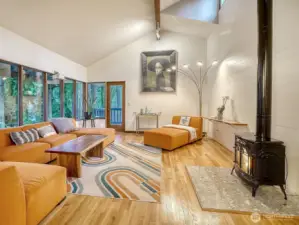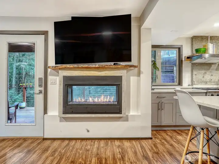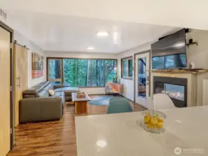Welcome to modernized living at its best. This home has been uniquely crafted to accommodate you and additionally offer 2 high end multi-purpose units. Each space has its own private entry and deck, kitchen with granite or quartz countertops and gas range, washer/ dryer, and walls of windows to enjoy the amazing evergreens. The upper-level home greets you with a patio space to sit, relax, and be zen by the coy pond. Once inside you will immediately fall in love with the architecture. Features include 13' vaulted ceiling in the living room with dormered windows, gas fireplace, hardwood floors, circular floorplan, dining room, chef's kitchen with a double refrigerator, plenty of cabinets for storage and a huge bonus covered deck great in any weather. The second living space is located on the south side of the house and does not disappoint. A deluxe kitchen with island opens to the living room with fireplace. Previously used as a MIL, here you will find a 2 bedroom or 1 bedroom with an office/flex room and spa like bath. The 3rd area an incredibly designed studio and ready go to if desired as a rental. Deeded rights to the LFP beach club. An incredible opportunity awaits.