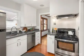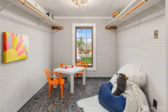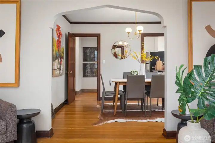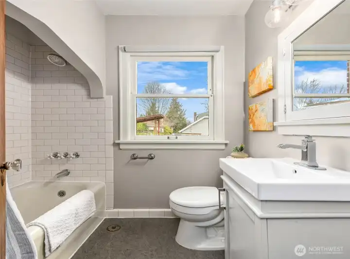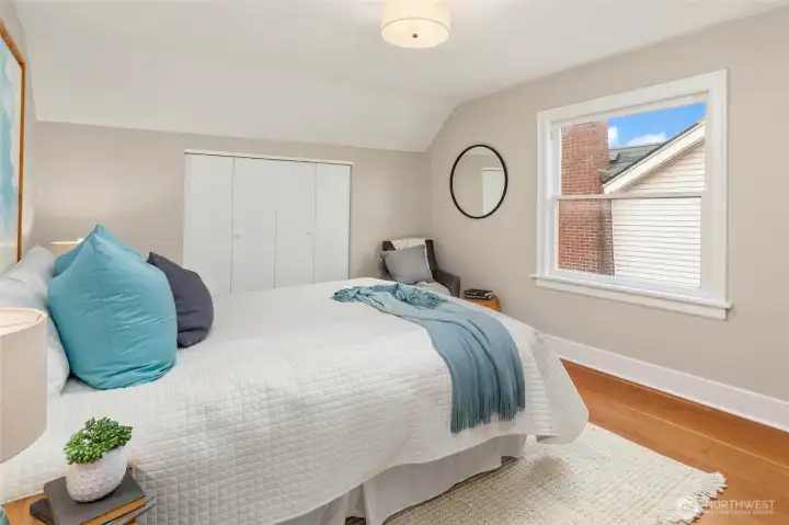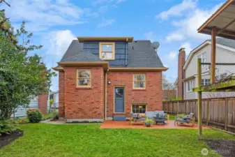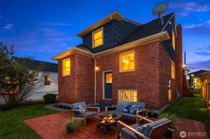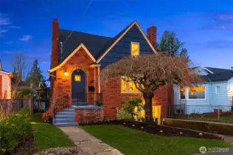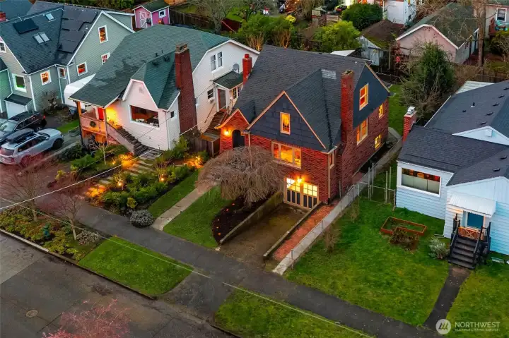 Gather around the glowing fire under starry summer skies, then cozy up indoors as winter settles in. Inside, this classic brick Tudor welcomes you with formal living and dining rooms, warm wood floors, and a timeless wood-burning fireplace that anchors everyday life. The flexible floor plan includes a main-floor bedroom and full bath—ideal for guests or work-from-home needs—while upstairs offers two light-filled bedrooms, a charming playroom, an ensuite half-bath, and potential to expand. Downstairs, the finishable basement with wine cellar, along with an attached garage, provides versatile space for recreation, storage, or future living area. Just out the back door, the tranquil level fenced yard—with garden beds, grapevines, and fig, cherry, and plum trees—feels like a private retreat. Set on a welcoming street that comes together for seasonal events, from neighborhood pickleball games to festive Halloween parades, this home enjoys a highly walkable location near Greenwood, Phinney, parks, schools, and local favorites. With public transit just one block away and easy commute options in every direction, getting around is effortless. This is truly a home to treasure, nestled in a neighborhood you’ll love.