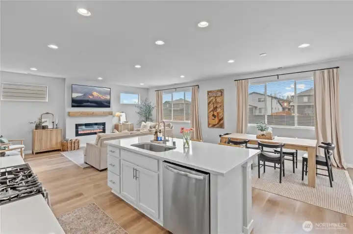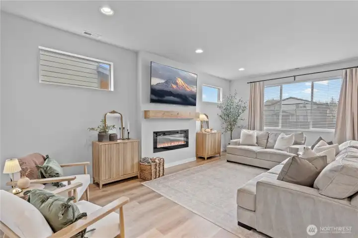 Welcome to this beautifully designed home in the desirable Perkins Prairie community. This 5 bed, 2.75 bath residence offers 2610sqft of thoughtfully designed living space. New landscape details and welcoming front patio lead into the open-concept main level featuring a light-filled kitchen with white cabinetry, large island, stainless steel appliances, and a stunning fireplace anchoring the living area. Upstairs offers additional living space, 3 secondary bedrooms, and a spacious primary suite complete with large walk-in closet and en-suite bath. Enjoy a fully-fenced backyard with newly planted arborvitae providing added privacy, plus a covered patio ideal for entertaining and relaxing. The garage is equipped with transfer switch ready for 50amp generator, adding modern convenience. Listen for the songbirds as you discover close by parks and trails with convenient access to schools, commuting routes, & local favorite restaurants, gyms and recreation.