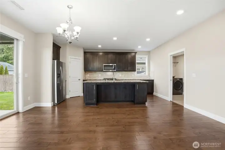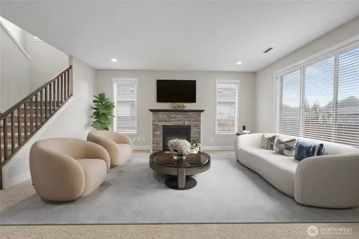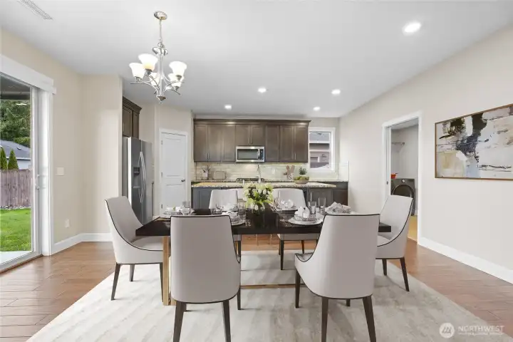 Light, bright, and thoughtfully designed, this 2,523 sq ft, 4 bed/2.5 bath home was built by New Tradition Homes, Built Green & ENERGY STAR certified. A covered front porch welcomes you inside to hardwood floors that extend from the foyer into the kitchen and dining areas. Just off the entry, a double-door office provides a quiet, flexible workspace. The great-room layout centers on a gas fireplace with stone surround. The island kitchen features granite countertops, an extra-large island with seating, a walk-in pantry, gas range, and stainless-steel appliances, plus a spacious utility/mud room connecting to the garage. From the dining area, the sliding door opens to a covered patio and a deep, fully fenced backyard; the home is situated thoughtfully on the 8,552 sq ft lot maximizing the usable outdoor space and views. Upstairs, double doors introduce a generous primary suite with a large walk-in closet and a travertine-finished bath offering dual sinks with ample counter space, a soaking tub, and a walk-in shower. There are three additional bedrooms include one oversized, ideal as a bonus, media, or guest room, plus a full hall bath with dual sinks. Enjoy the Whispering Pines community, with its wide, quiet streets and a community park with walking paths, tennis and basketball courts, picnic areas, and a playground. This wonderful location is just minutes to Battle Ground Lake, Lewisville Park, shopping, and dining.