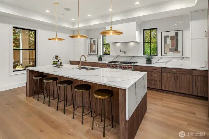 MN Custom Homes presents a modern craftsman design located in the heart of Enatai. Entertainment spaces include 2 story great room, chef’s kitchen, outdoor covered living area with fireplace & spacious upper-floor bonus room. Private main floor guest suite. Luxurious primary suite with 5 piece bath and heated floors. Generous secondary bedrooms. Abundant natural light. Smart & green home features throughout, including solar panels. 3 car wide garage. Private yard. Close proximity to Enatai Elementary and parks. West Bellevue Schools & close proximity to world class Downtown Bellevue amenities.