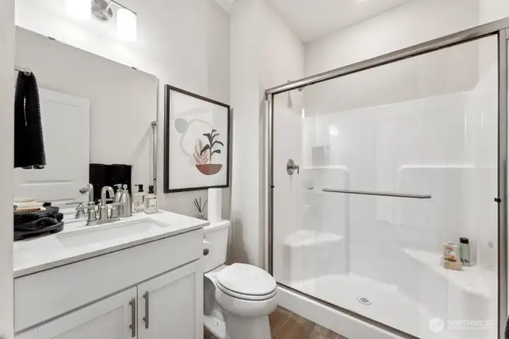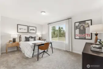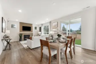 This new construction Bennett plan at Liberty Bay Vista will be ready for a February Move-In, featuring nearly 2400 sq ft, 4 bedrooms, 3 baths, and a 2-car garage. The main level features an open great room anchored by a cozy gas fireplace plus a convenient main-floor bedroom and bath with a tiled walk-in shower, ideal for guests or multi-generational living. The gourmet chef’s island kitchen includes 42" soft-close white solid-wood cabinetry, quartz countertops, tile backsplash, under-cabinet lighting, a gas cooktop, built-in wall oven/microwave, and walk-in pantry. Enjoy summer sunsets and peek-a-boo views from the welcoming front porch. Fully landscaped front and backyards offer a covered patio and rear fence at the backyard for private outdoor living. Upstairs, the owner’s suite impresses with wide windows, a walk-in closet, and 5 piece en-suite bath featuring raised-height dual undermount sink vanity with quartz countertops, a soaking tub, and tiled walk-in shower with heavy frameless glass. The expansive loft separates the primary from two generously sized secondary bedrooms that share a full hall bath, also with raised-height dual undermount sink vanity, quartz counters, and tub/shower with tile surround. The Laundry room includes a sink and cabinetry. Only Minutes to Bainbridge and Kingston ferries. All 3 North Kitsap schools & downtown Poulsbo waterfront shopping/dining are just steps away! Buyer’s Broker must accompany and/or register Buyer at or before first visit.