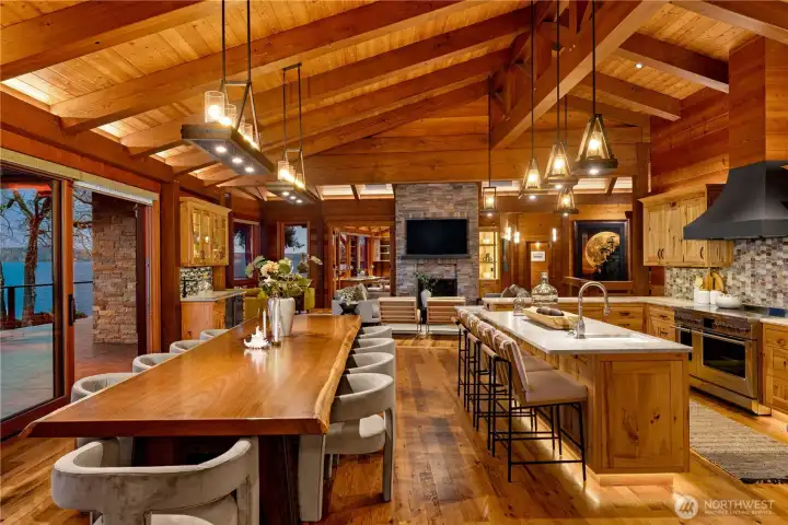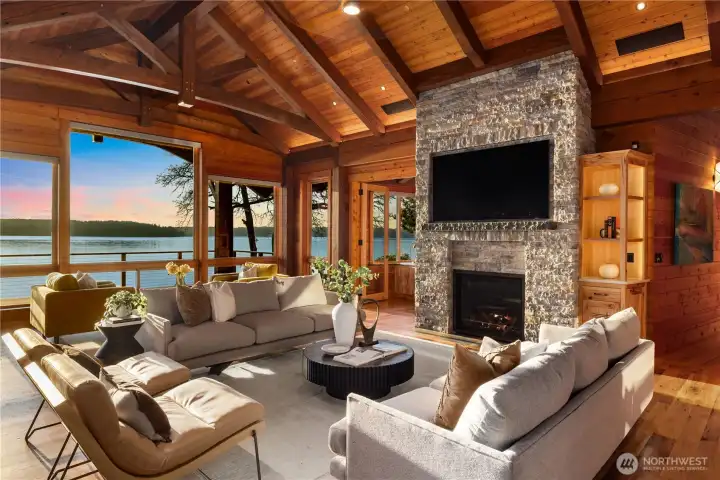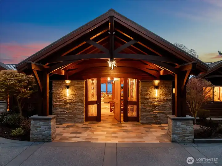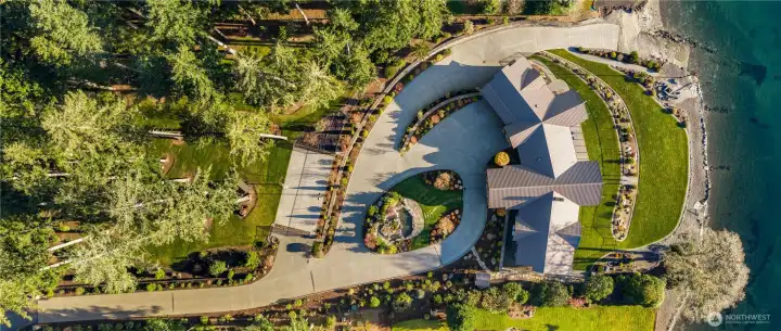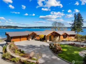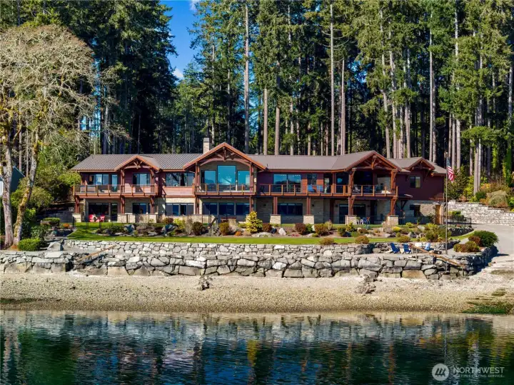 On a coveted stretch of Puget Sound, this gated 2.5-acre estate offers 215 feet of rare, level no-bank waterfront and an extraordinary convergence of privacy, land, and shoreline seldom available. The timeless timber-frame style residence is defined by light and water. Walls of glass frame sweeping, ever-changing views, creating a seamless connection to the Sound. Expansive living and dining spaces flow effortlessly for both intimate moments and elevated entertaining, complemented by a refined chef’s kitchen, private primary suite, dedicated office, and flexible living spaces. Outdoor decks with a full kitchen and cozy fireplace extend gatherings to the open air. The walk-out lower level elevates leisure with four additional bedrooms, multiple baths, and an impressive suite of amenities including a lounge, minibar, golf simulator, shuffleboard, and a wine room with a temperature controlled cellar. A private boat launch invites mornings on the water and evenings at the shoreline. Two oversized two-car garages and professionally landscaped grounds with level lawn complete the offering. Behind the gates, a rare sense of seclusion prevails, while resident orcas, seals, and dolphins pass just beyond—an extraordinary, ever-changing backdrop. And no ferry travel necessary just a little more than an hour from Seattle and SeaTac airport and close by Gig Harbor and Tacoma. Nearby amenities include Alderbrook Resort & Spa as well as Lakeland Village Golf Course and Fair Harbor Marina.