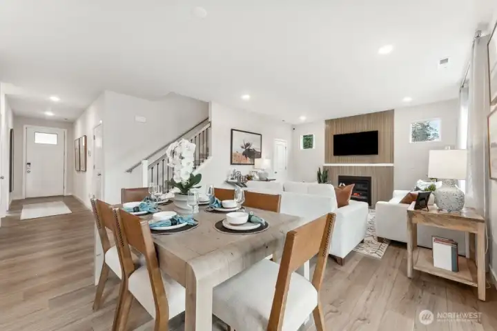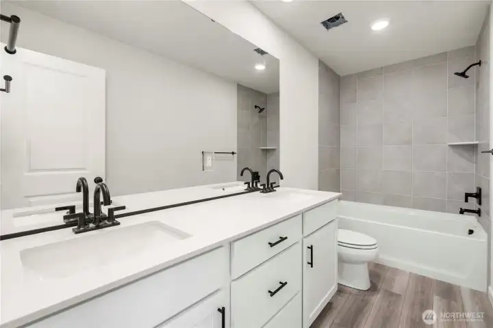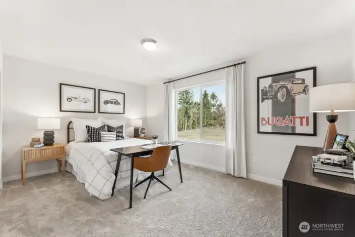This new construction Corner Lot Bennett at Liberty Bay Vista will be ready for a June/July Move-In, featuring nearly 2400 sq ft, 4 bedrooms, 3 baths and a 2-car garage. The main level features an open great room anchored by a cozy gas fireplace + a convenient main-floor bedroom and bath with a tiled walk-in shower, ideal for guests or multi-generational living. The gourmet chef’s island kitchen includes 42" soft-close white solid-wood cabinetry, quartz countertops, tile backsplash, under-cabinet lighting, a gas cooktop, built-in wall oven/microwave, and walk-in pantry. Enjoy summer sunsets and peek-a-boo views from the welcoming front porch. Fully landscaped front and backyards offer a covered patio and rear fence at the backyard for private outdoor living. Upstairs, the owner’s suite impresses with wide windows, a walk-in closet, and 5 piece en-suite bath featuring raised-height dual undermount sink vanity with quartz countertops, a soaking tub, and tiled walk-in shower with heavy frameless glass. The expansive loft separates the primary from two generously sized secondary bedrooms that share a full hall bath, also with raised-height dual undermount sink vanity, quartz counters, and tub/shower with tile surround. The Laundry room includes a sink and cabinetry. Only Minutes to Bainbridge and Kingston ferries. All 3 North Kitsap schools & downtown Poulsbo waterfront shopping/dining are just steps away! Buyer’s Broker must accompany and/or register Buyer at/before first visit.