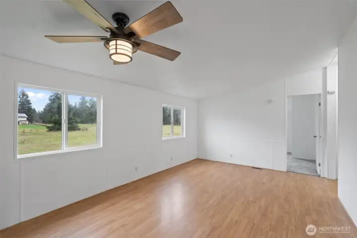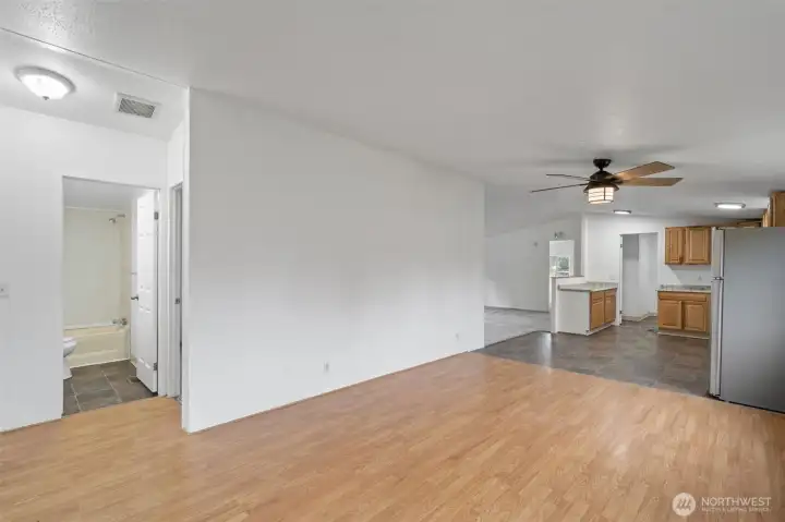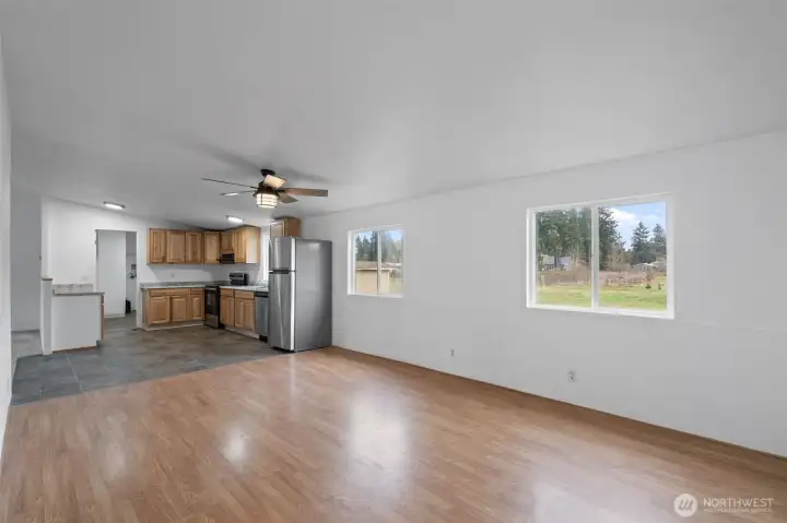 Welcome to this inviting 4-bedroom, 1¾-bath home offers space, comfort in Rochester. Inside, you’ll find vaulted ceilings and an open-concept layout that create a bright and welcoming living environment. The kitchen features hardwood cabinets and flows into the dining & living areas. The home offers four generously sized bedrooms, each with spacious closets. Flooring throughout includes a mix of laminate, vinyl, and carpet. A large utility room offers ample space for laundry, storage, and organization. Decks at the front and back doors. The nearly one-acre level lot provides room to garden, play, or simply enjoy the peaceful setting. Conveniently located just 5 minutes from I-5, with shopping and stores nearby, this home offers a rare balance of privacy and accessibility—centrally positioned between Seattle and Portland for effortless commuting and travel.